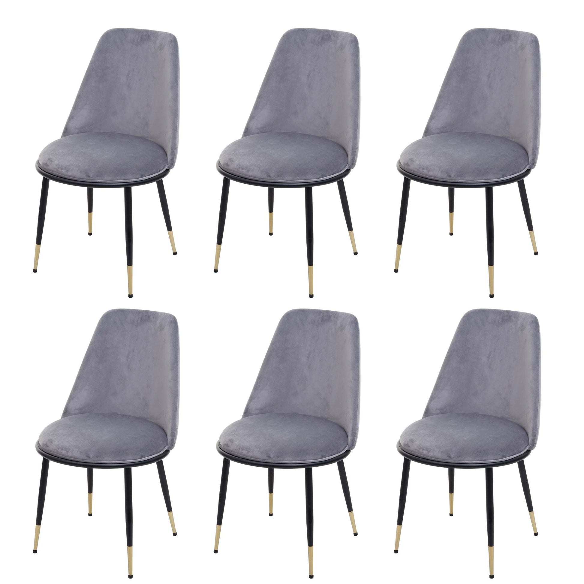 Cosmo Casa - Eetkamerstoelen set van 6 - Met armleuningen - Fluweel - Grijs
