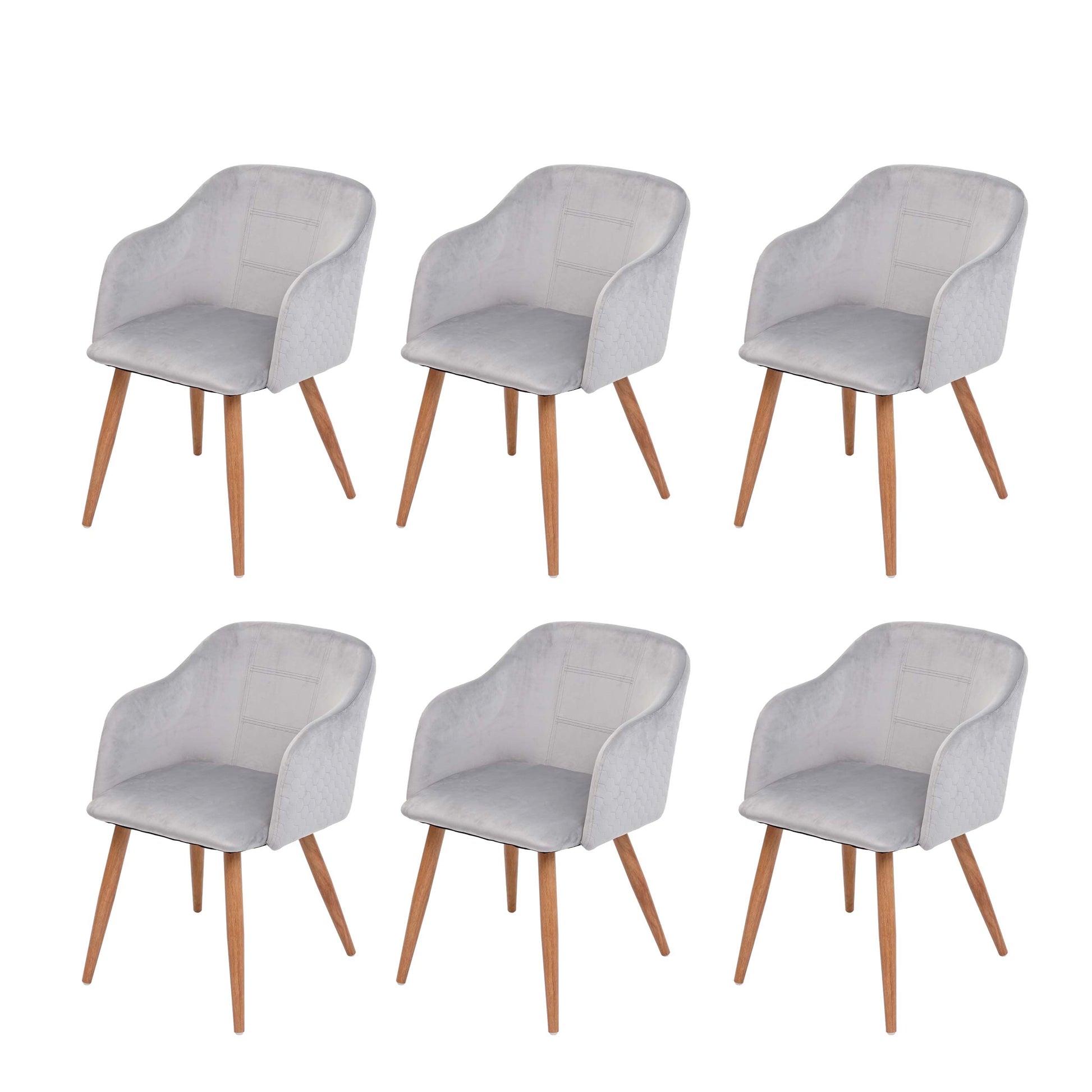 Cosmo Casa - Set van 6 Eetkamerstoelen - Retro - Textiel - Lichtgrijs fluweel