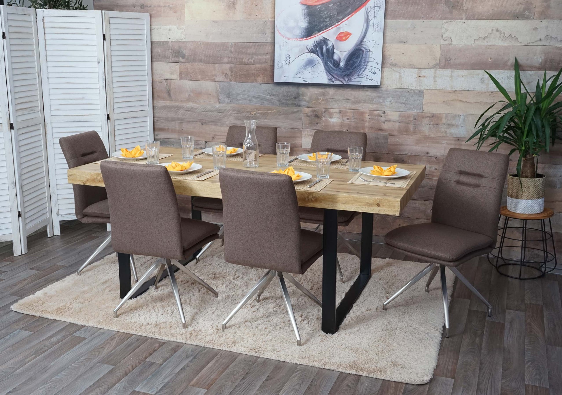 Cosmo Casa - Set van 6 Eetkamerstoelen - Fauteuil - Textiel & Roestvrij staal - Bruin | €999,95