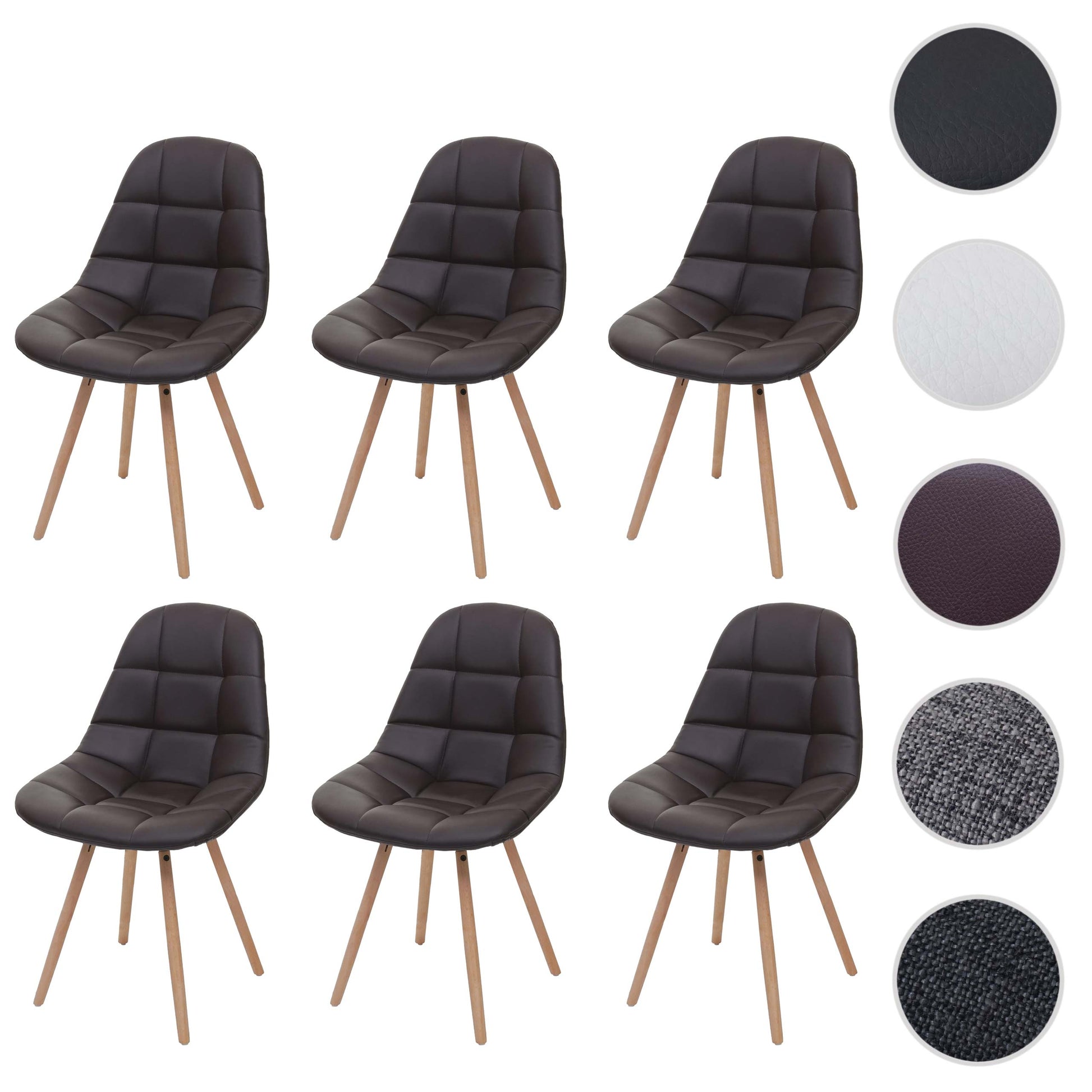 Cosmo Casa - Eetkamerstoelen set van 6 - Retro design - Imitatieleer - Bruin