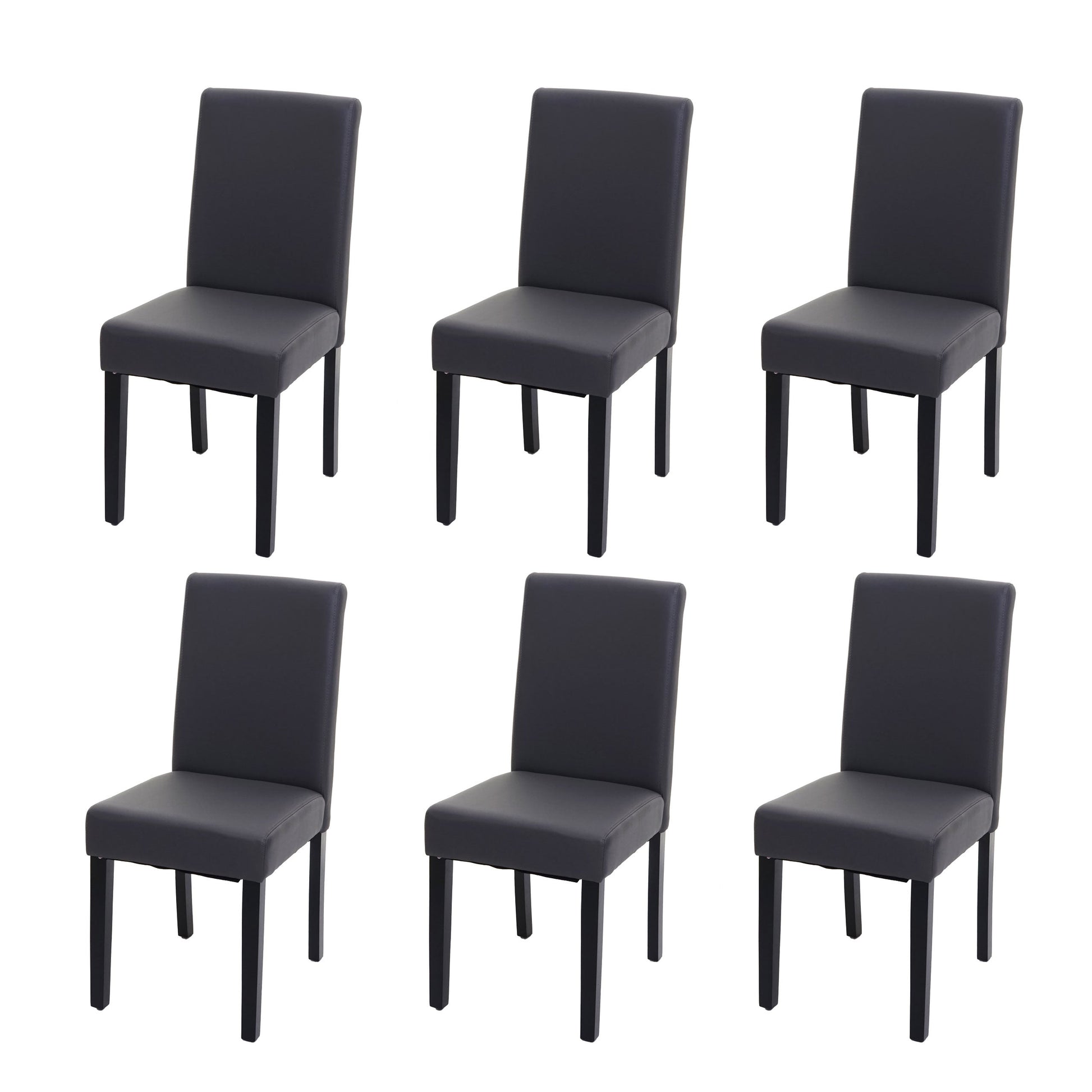 Cosmo Casa Set van 6 Littau eetkamerstoelen ~ kunstleer, matgrijs, donkere poten