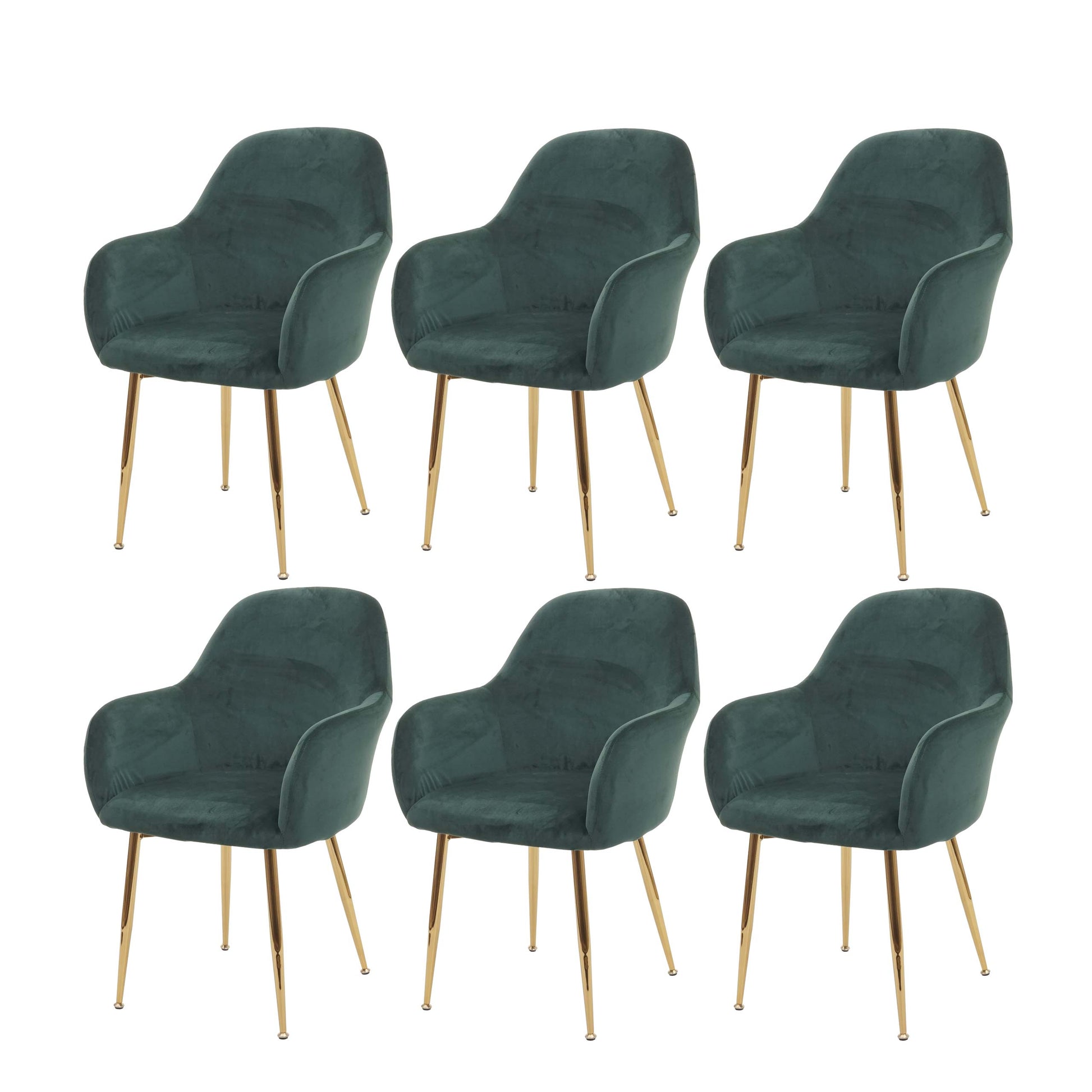 Cosmo Casa - Set van 6 Eetkamerstoelen - Retrodesign - Groen Fluweel met Gouden Poten