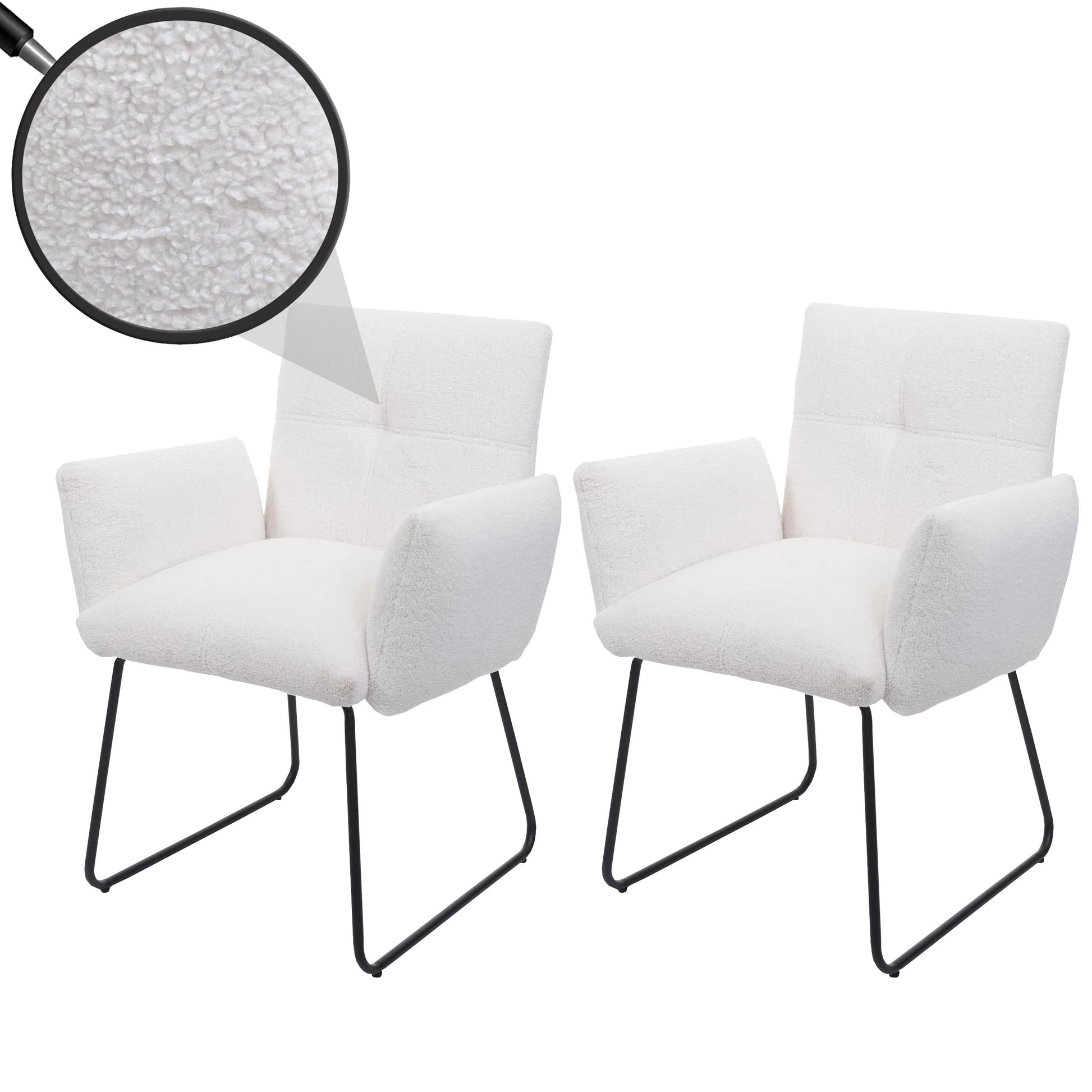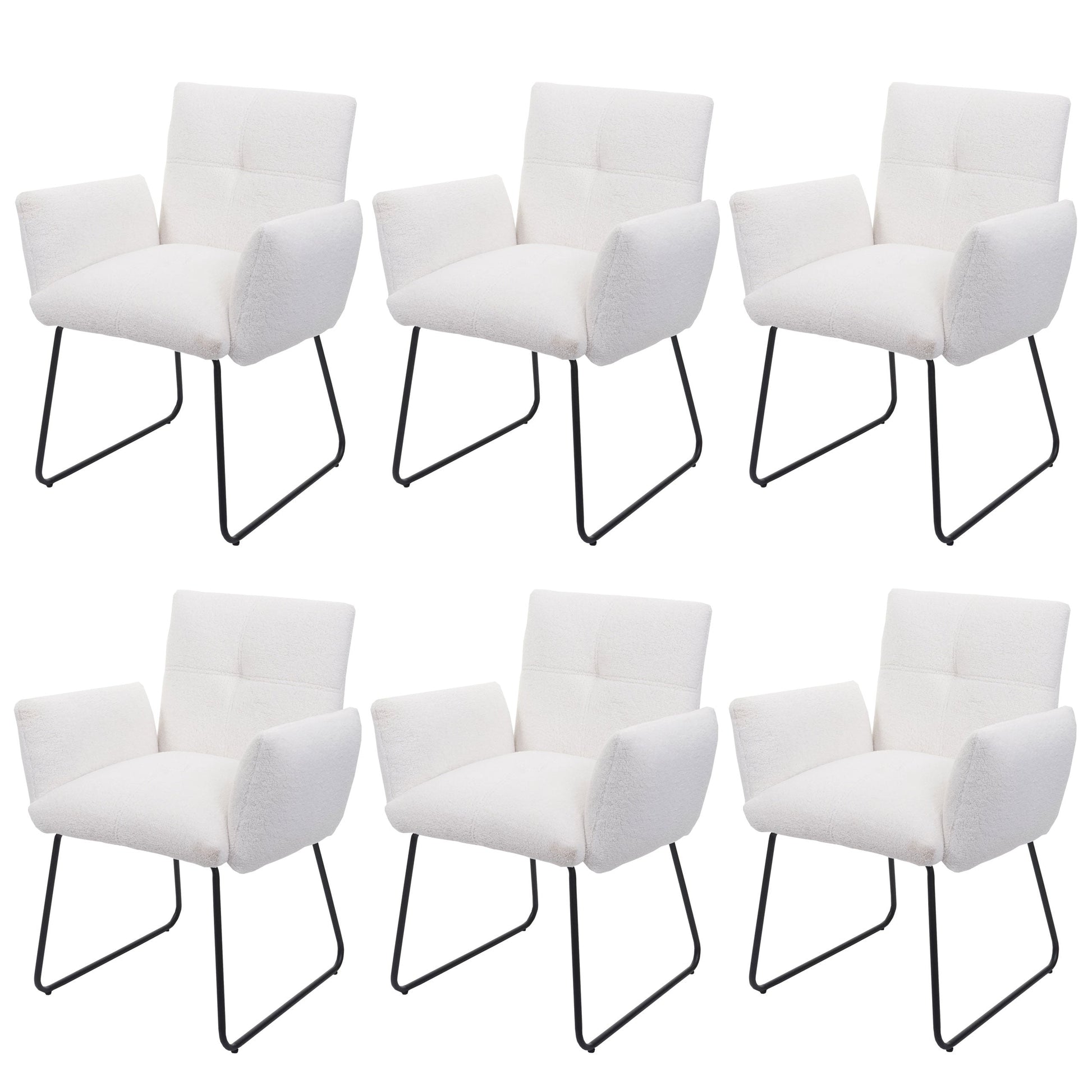 Cosmo Casa - Set van 6 Eetkamerstoelen - Armleuning - Bouclé - Wit | Standaard | €2.029,95