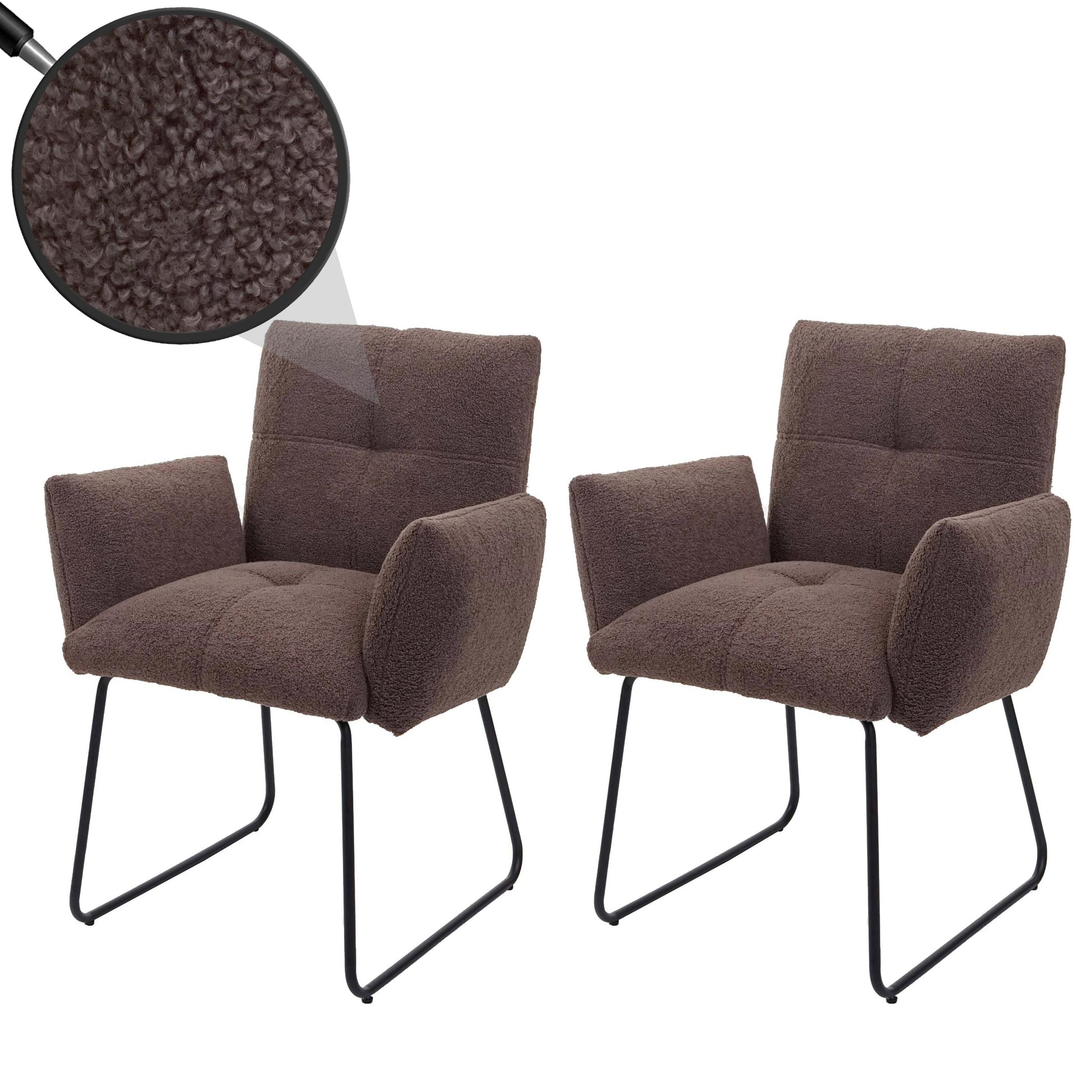 Cosmo Casa - Set van 6 Eetkamerstoelen - Armleuning - Bouclé - Bruin | Standaard | €1.679,95