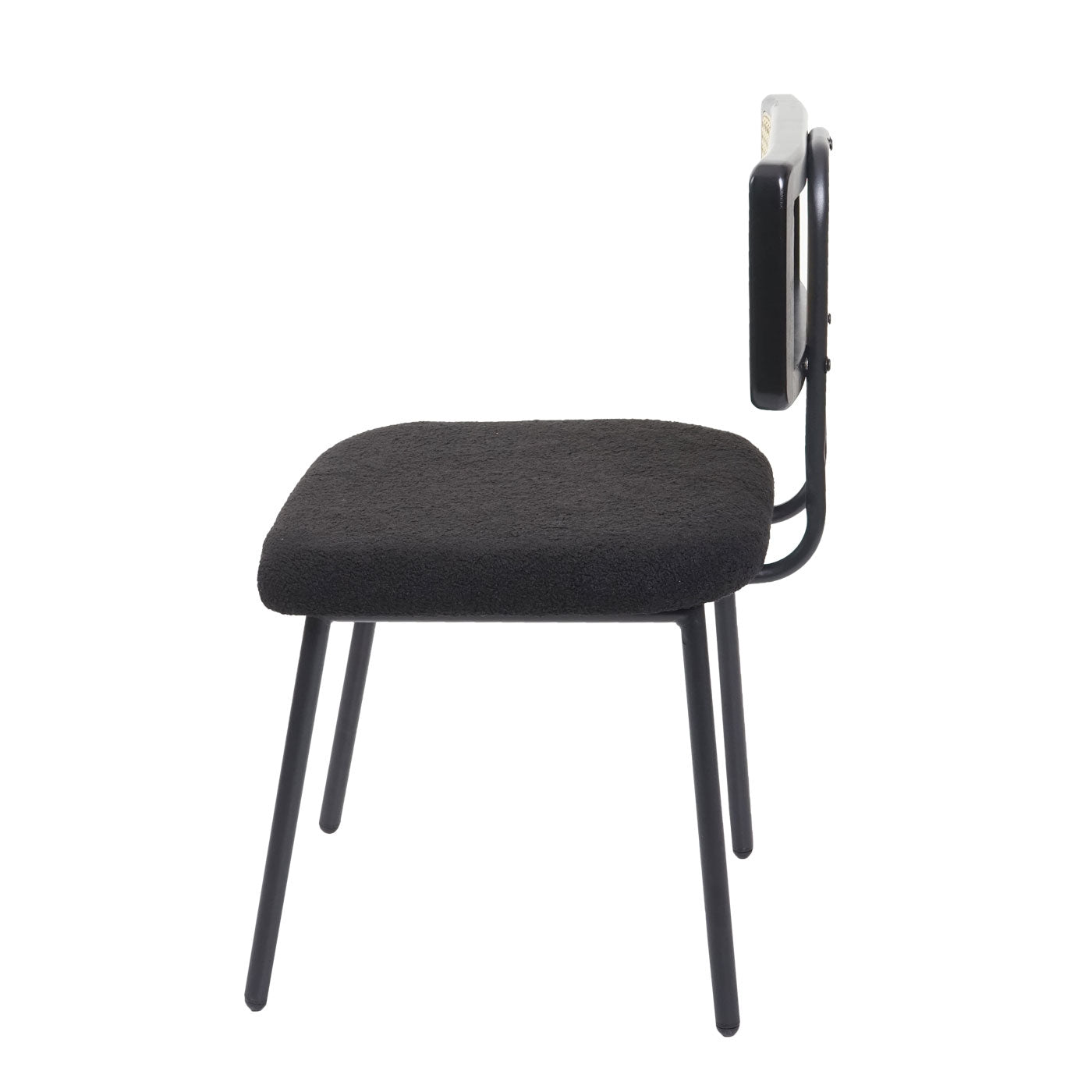 Cosmo Casa - Set van 6 Eetkamerfauteuils - Hout, Polyrotan & Metaal - Bouclé Textiel - Zwart | Standaard | €779,95