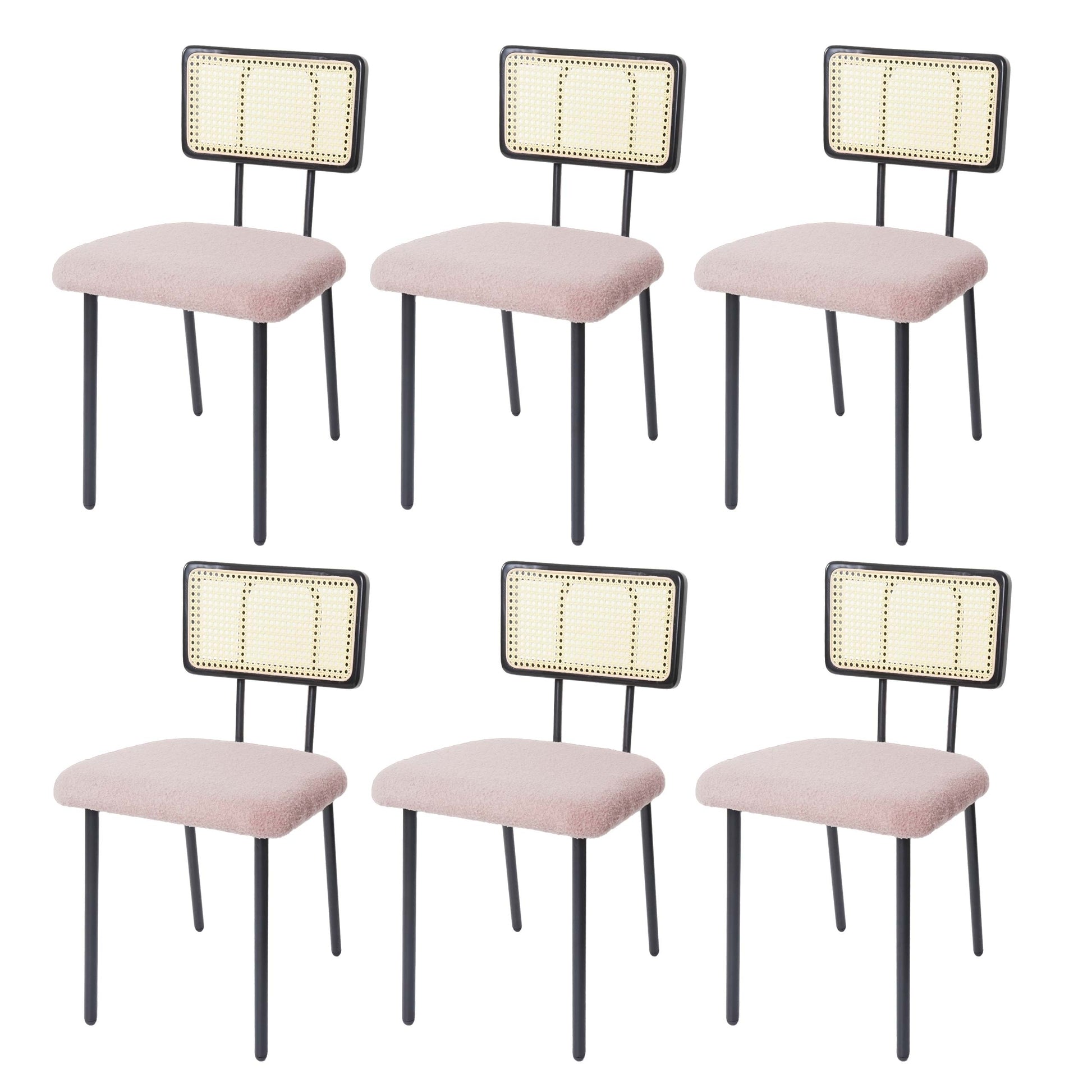 Cosmo Casa - Set van 6 Eetkamerfauteuils - Hout, Polyrotan & Metaal - Bouclé Textiel - Roze | Standaard | €769,95