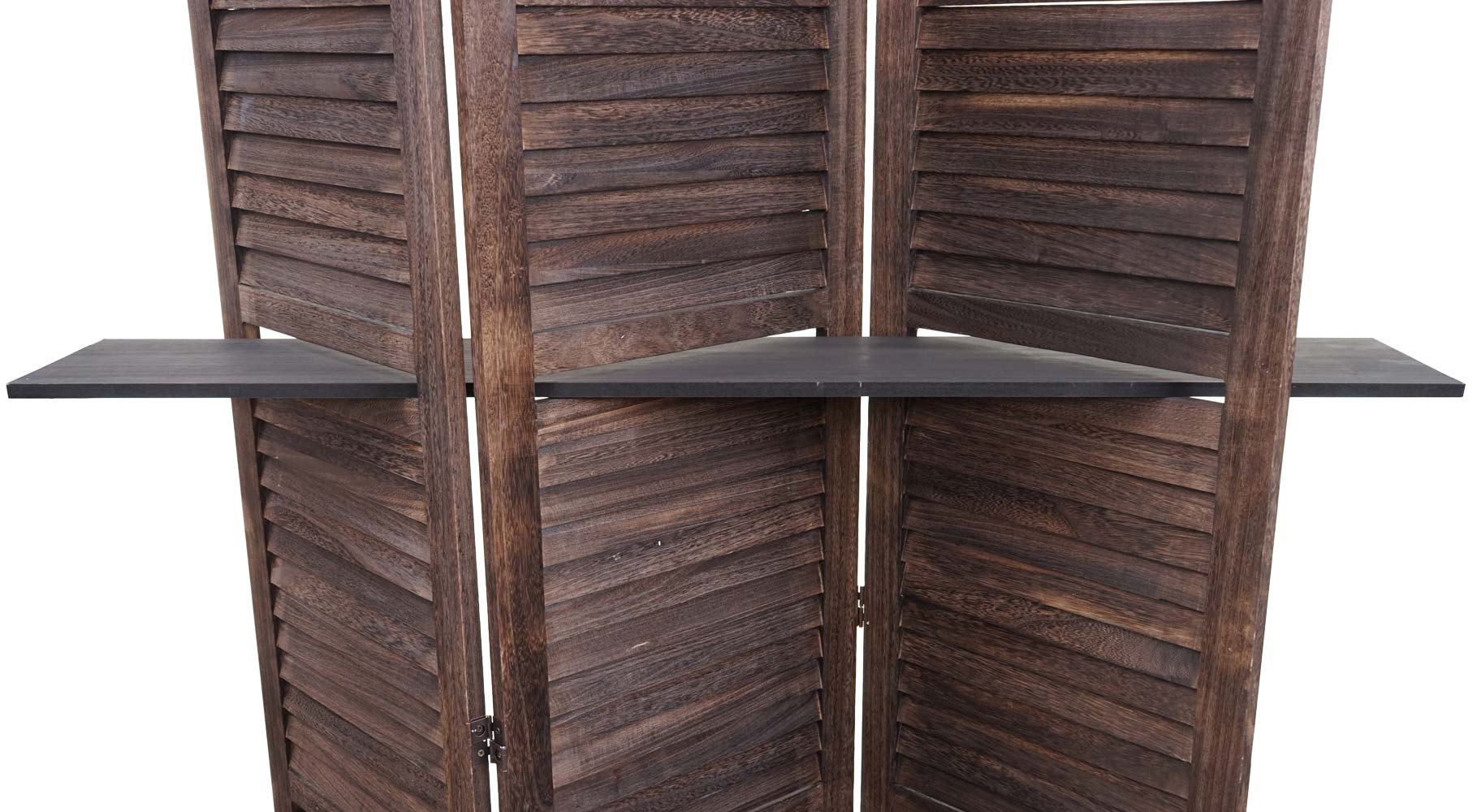 Dit tijdloze kamerscherm is een echte blikvanger! Maar u kijkt er alleen in, niet doorheen – anders zou het stom zijn. Dit maakt het een uitstekende roomdivider, of u hem nu in de hal, woonkamer, slaapkamer of kinderkamer plaatst! De drie planken schuiven door de vleugels. In de hoeken die zo ontstaan, kunt u boeken of decoratieve items kwijt. Dit zorgt voor een lossere uitstraling en creëert blikvangers.