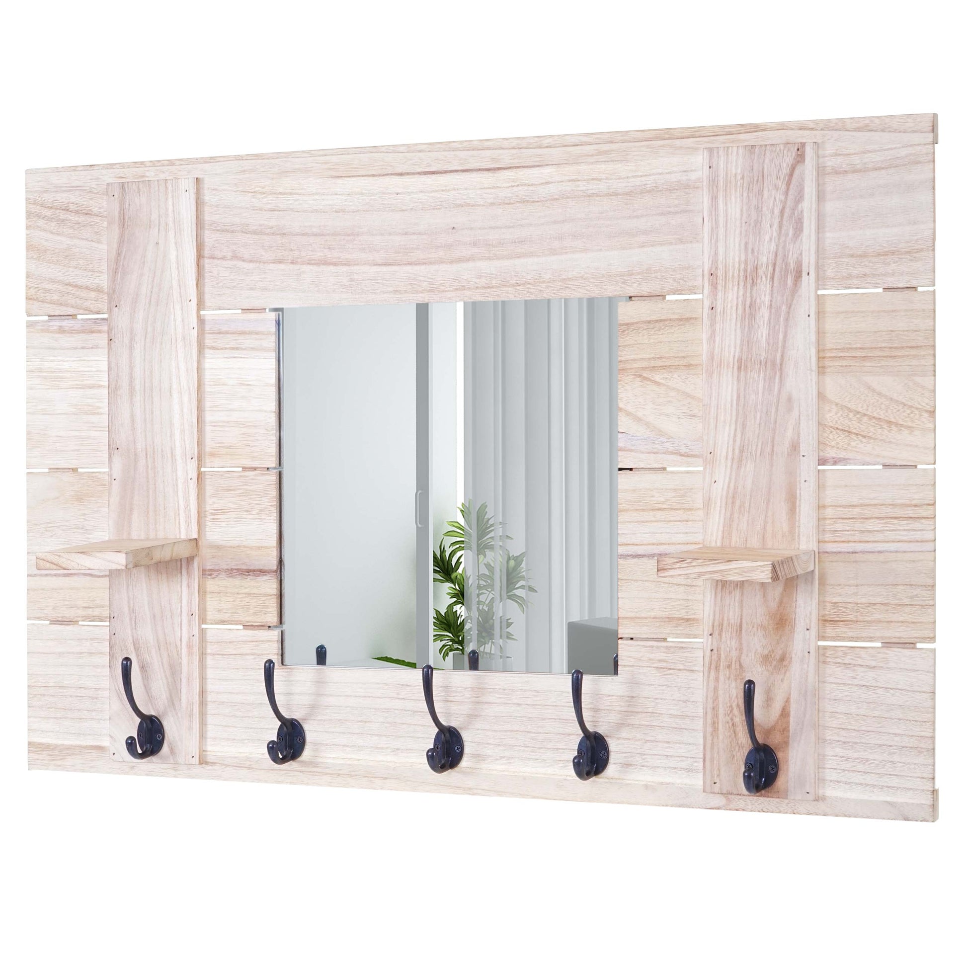 - De wandkapstok in charmante shabby look combineert functionaliteit met stijlvol design. De geïntegreerde spiegel zorgt voor een laatste check voordat u het huis verlaat, terwijl het paulowniahout zorgt voor stabiliteit en een natuurlijke uitstraling.