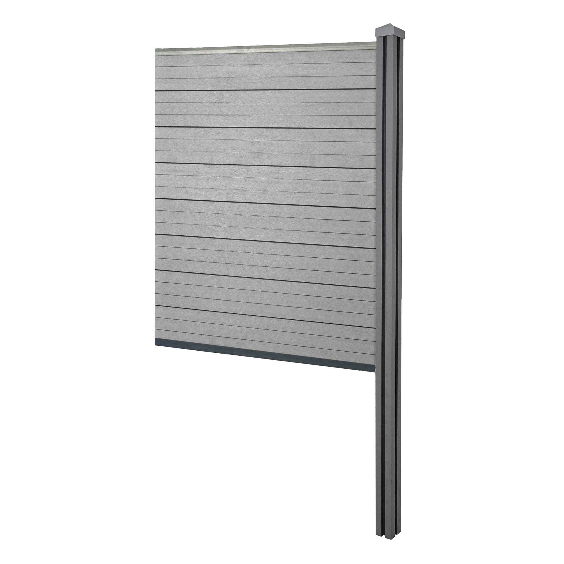 Cosmo Casa - Privacyscherm Sarthe - Windscherm met paal voor inbeton - WPC - Grijs - Smal verlengelement 98 cm | Standaard | €239,95