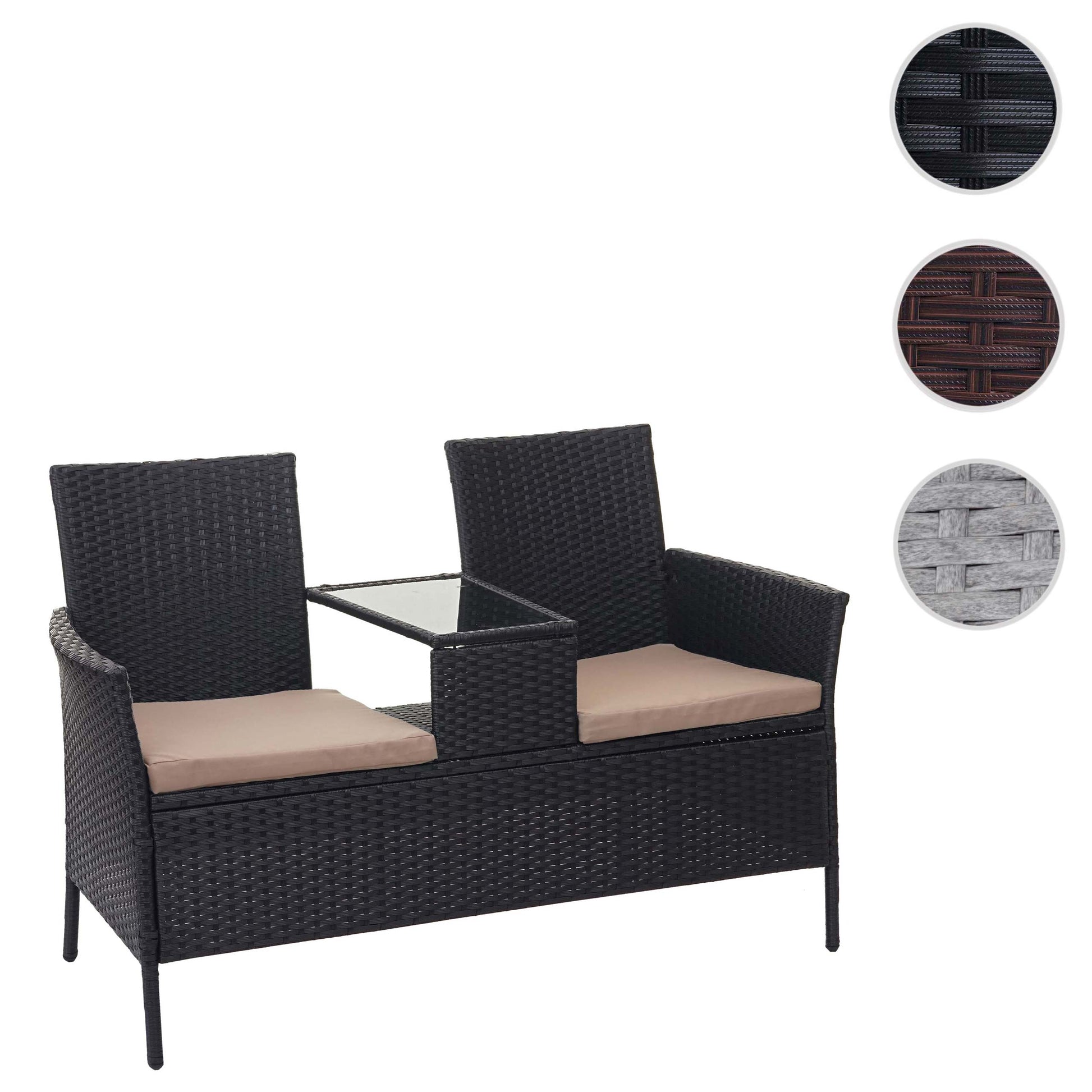 Cosmo Casa - Tuinbank met tafel - Zitgroep - Polyrotan - Zwart & Crème - 132 cm