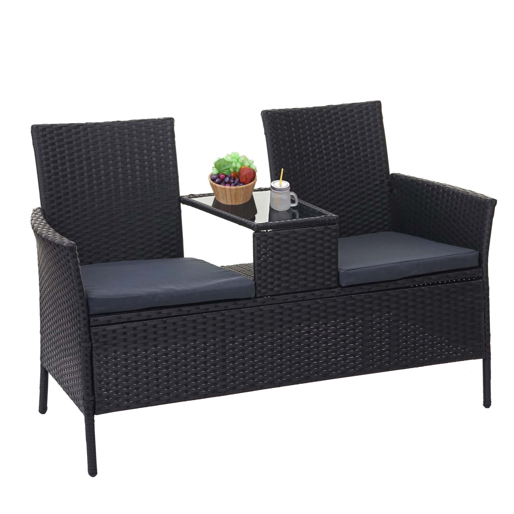 Cosmo Casa - Tuinbank met tafel - Zitgroep - Polyrotan - Zwart & Donkergrijs - 132 cm