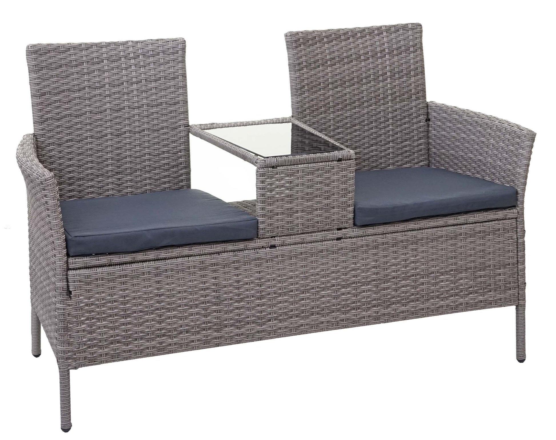 Cosmo Casa - Tuinbank met tafel - Zitgroep - Polyrotan - Grijs & Donkergrijs - 132 cm