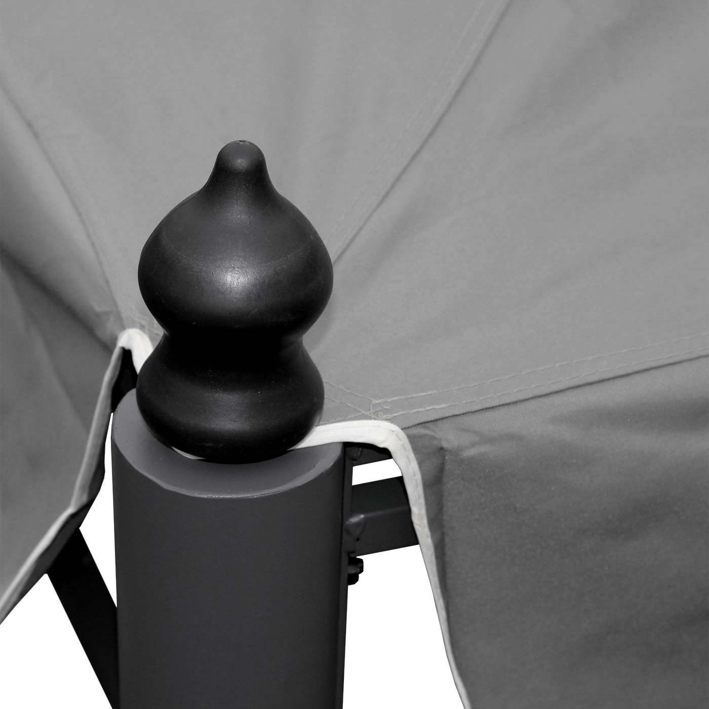Wat is er fijner dan een ontspannen plekje in de zon? Helaas kent de creativiteit van onze omgeving geen grenzen als het gaat om het verpesten van een aangename dag buiten. Maar wat als u een uitgebreid arsenaal aan strategische tegenmaatregelen heeft? Brandt de zon te fel of begint het te miezeren? Geen probleem, het dak biedt optimale bescherming tegen de brandende middagzon. Komt er een fris briesje aan? Geen probleem, dankzij de flexibele zijwanden. Trekt vocht of avondlicht muggen aan? Ook geen probleem: houd die vervelende bloedzuigers gewoon buiten dankzij het geïntegreerde klamboe.
