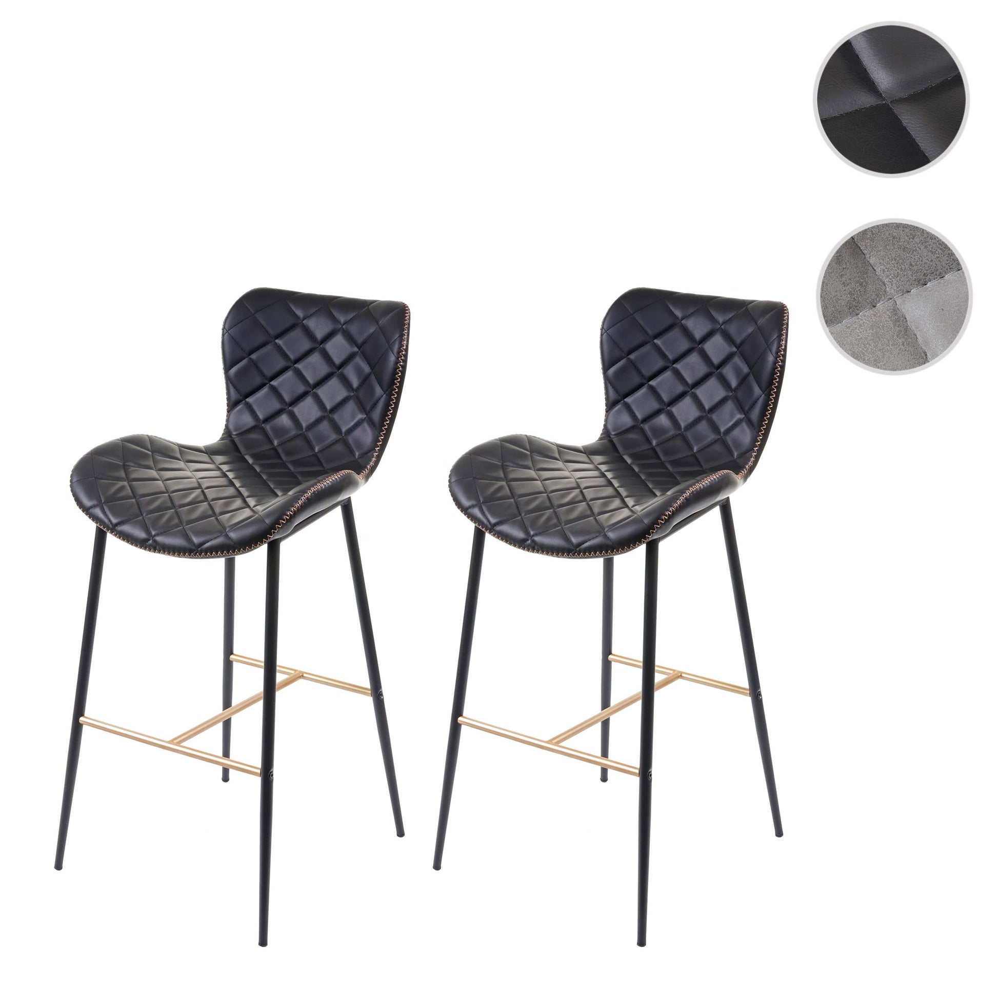 Cosmo Casa - Set van 2 Barkrukken - Vintage - Imitatiel leer - Zwart