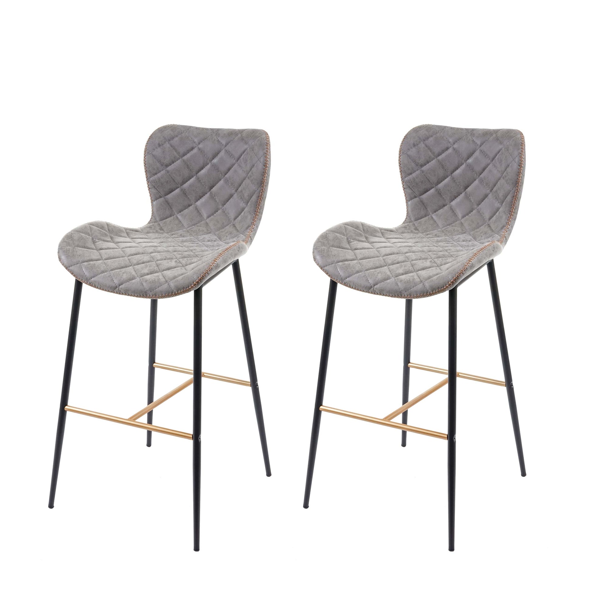 Cosmo Casa - Set van 2 Barkrukken - Vintage - Imitatiel leer - Grijs
