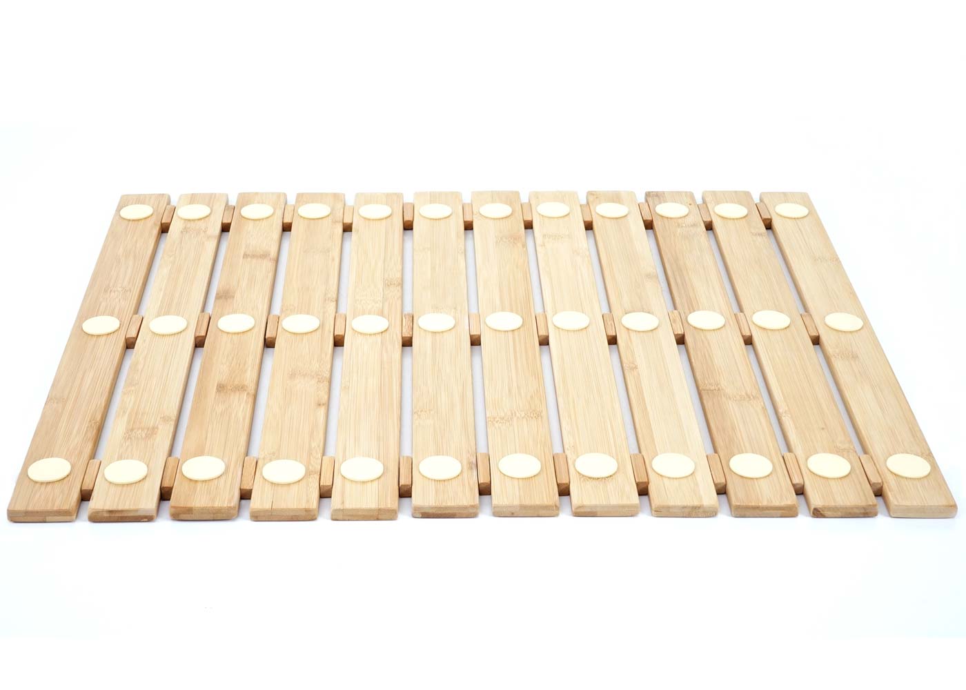 - Leveringsomvang: 1x badmat - Vloerbeschermende antislipnoppen - Gemaakt van hoogwaardig bamboe - Voor badkamer en sauna - Passend bij onze bamboe badkamermeubels - Product is melaminevrij