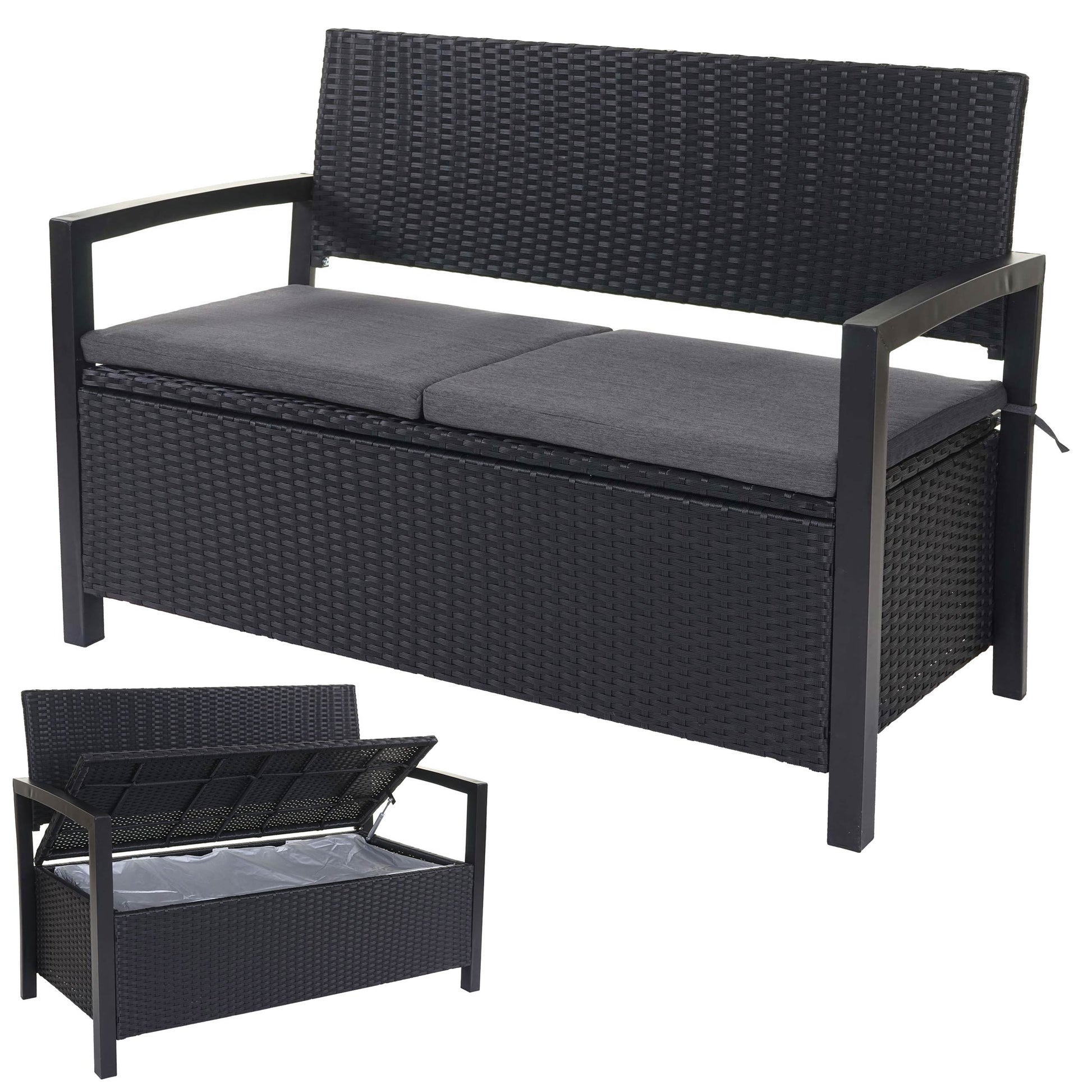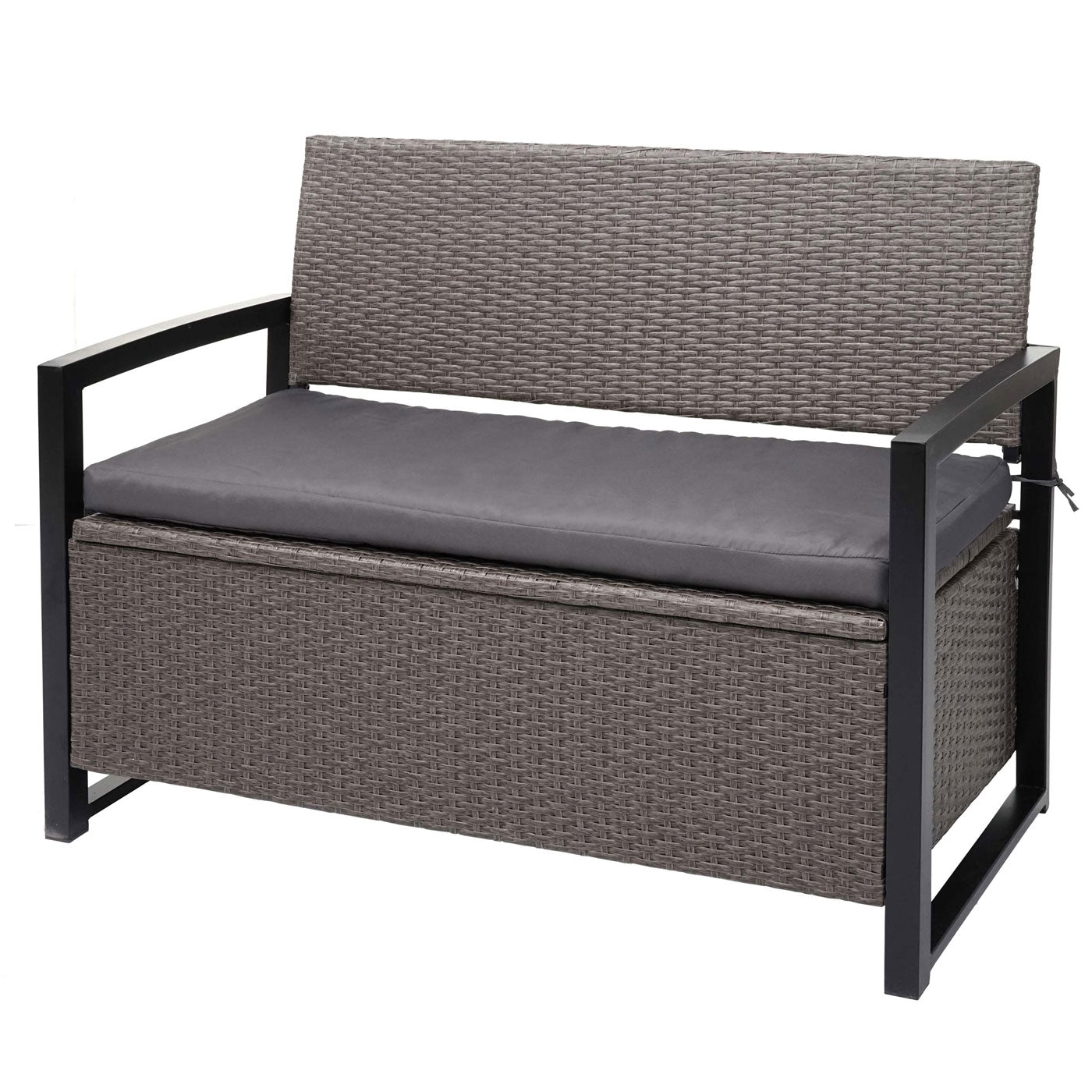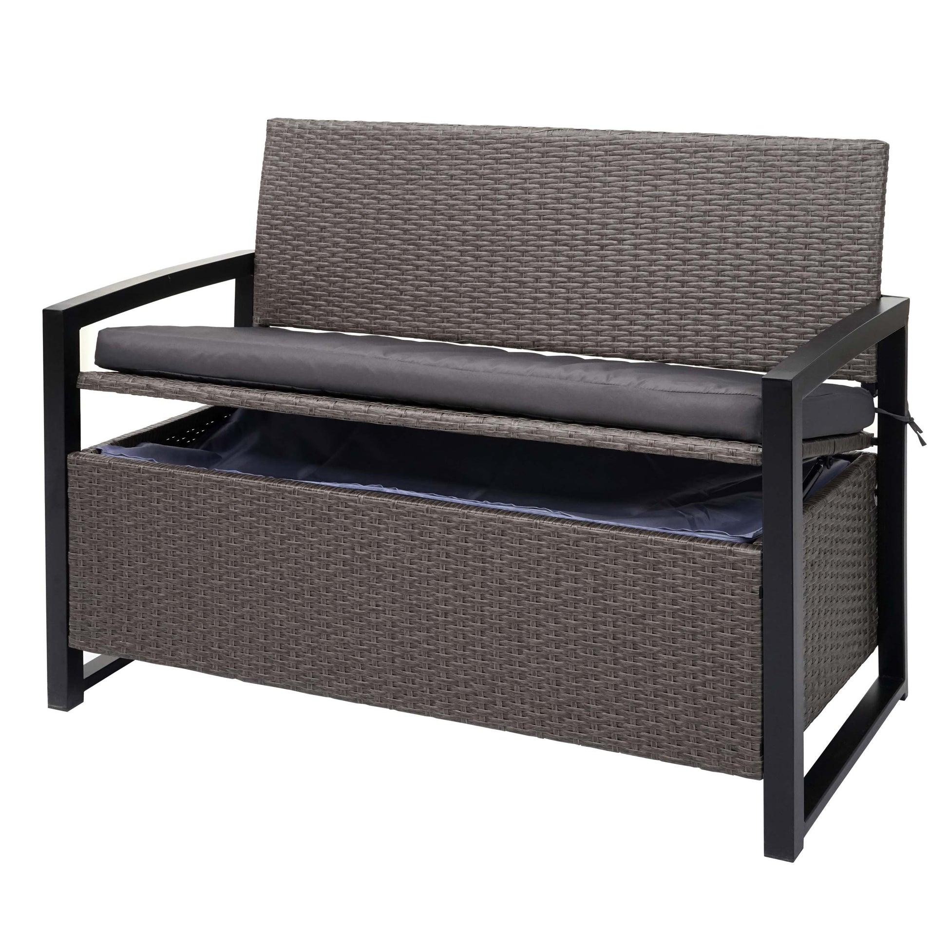 Cosmo Casa - Polyrotan 2-zitsbank - Opbergvak - Polyrotan - Gemêleerd grijs & Grijs