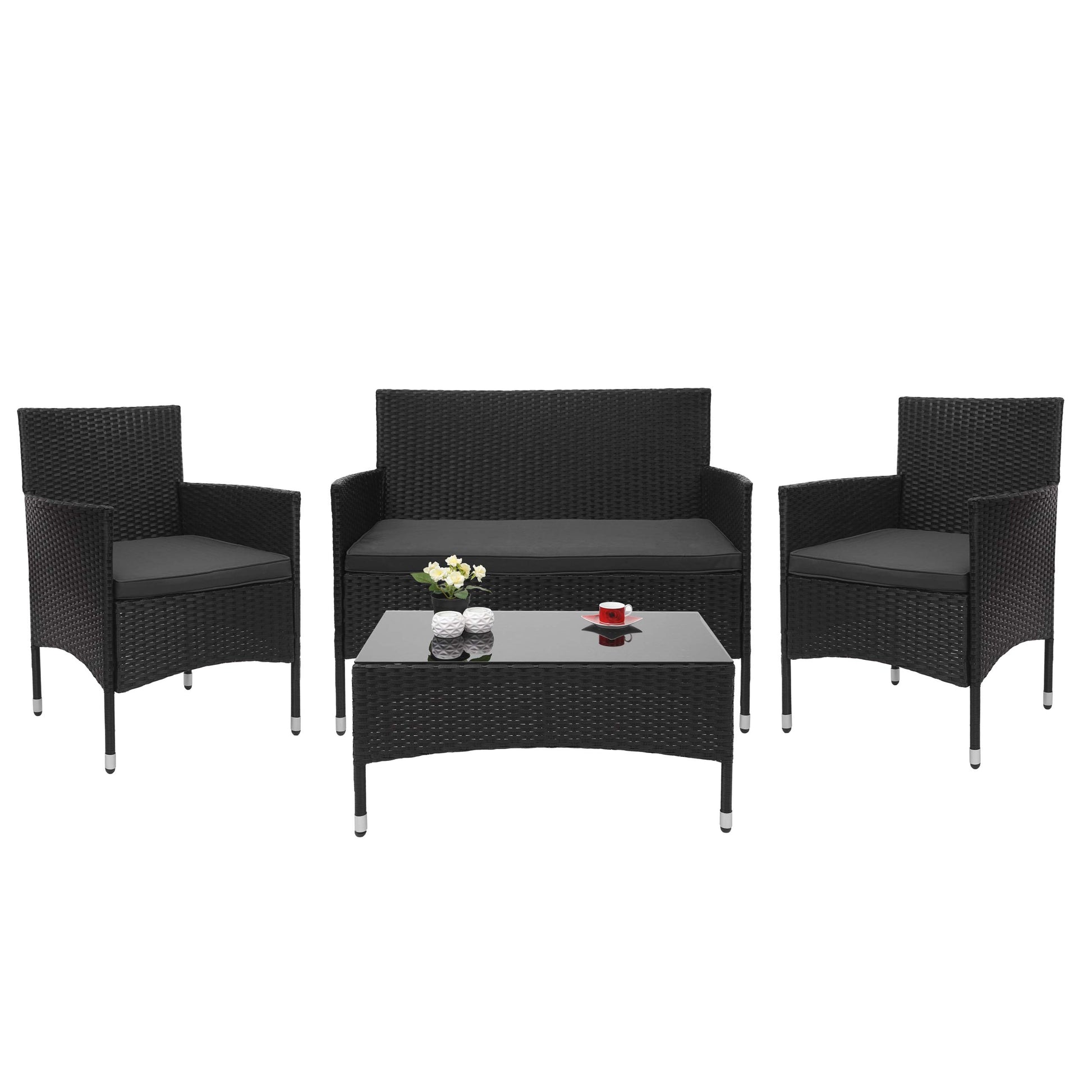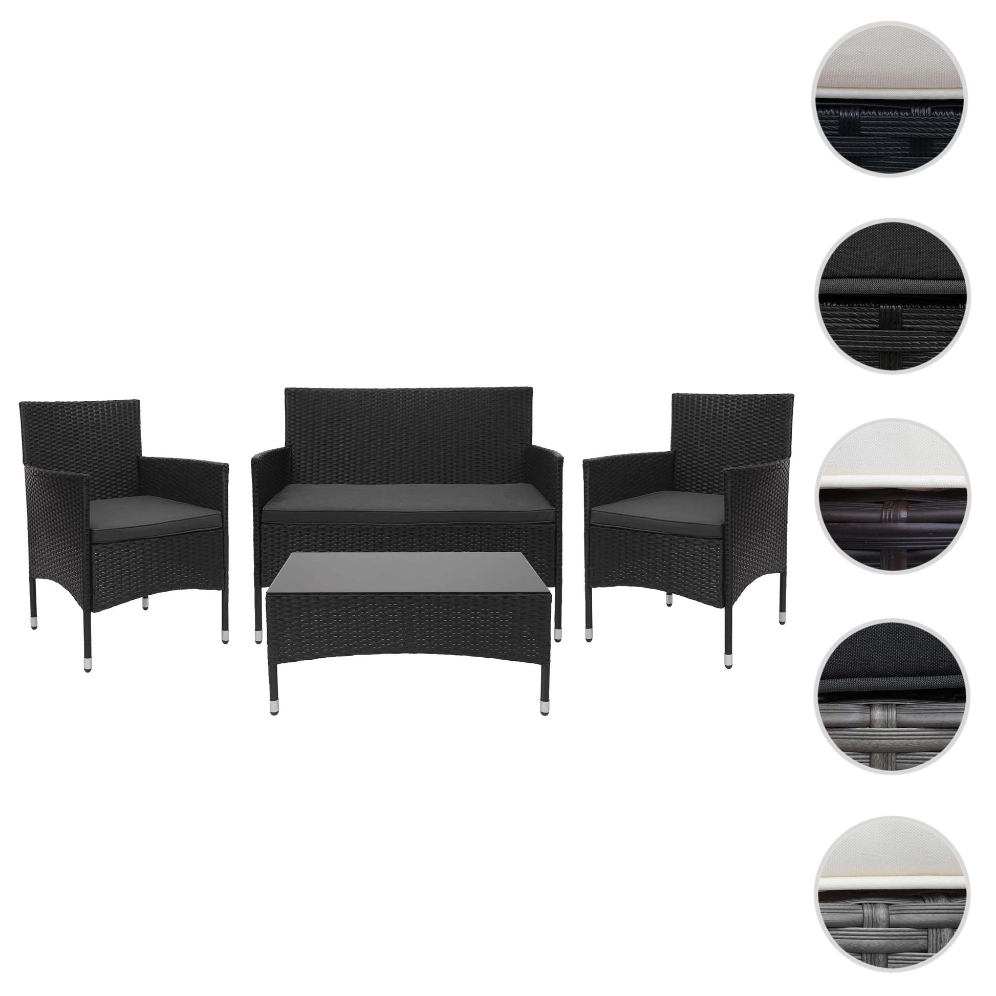 Cosmo Casa - Polyrotanset - Zitgroep - Polyrotan - Zwart & Donkergrijs