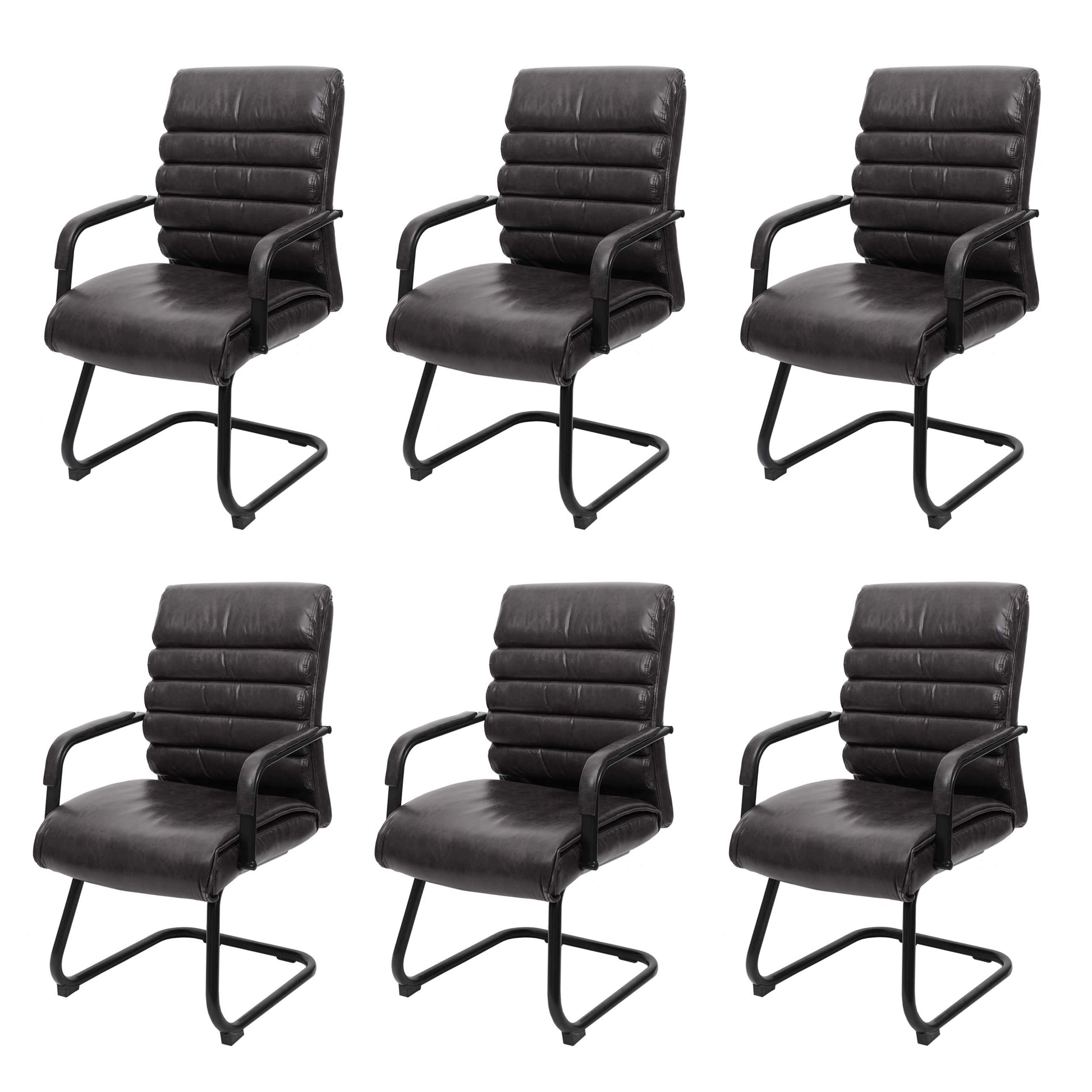Cosmo Casa - Set van 6 Vergaderstoelen - Suèdelook - Kunstleer & Metaal - Zwart