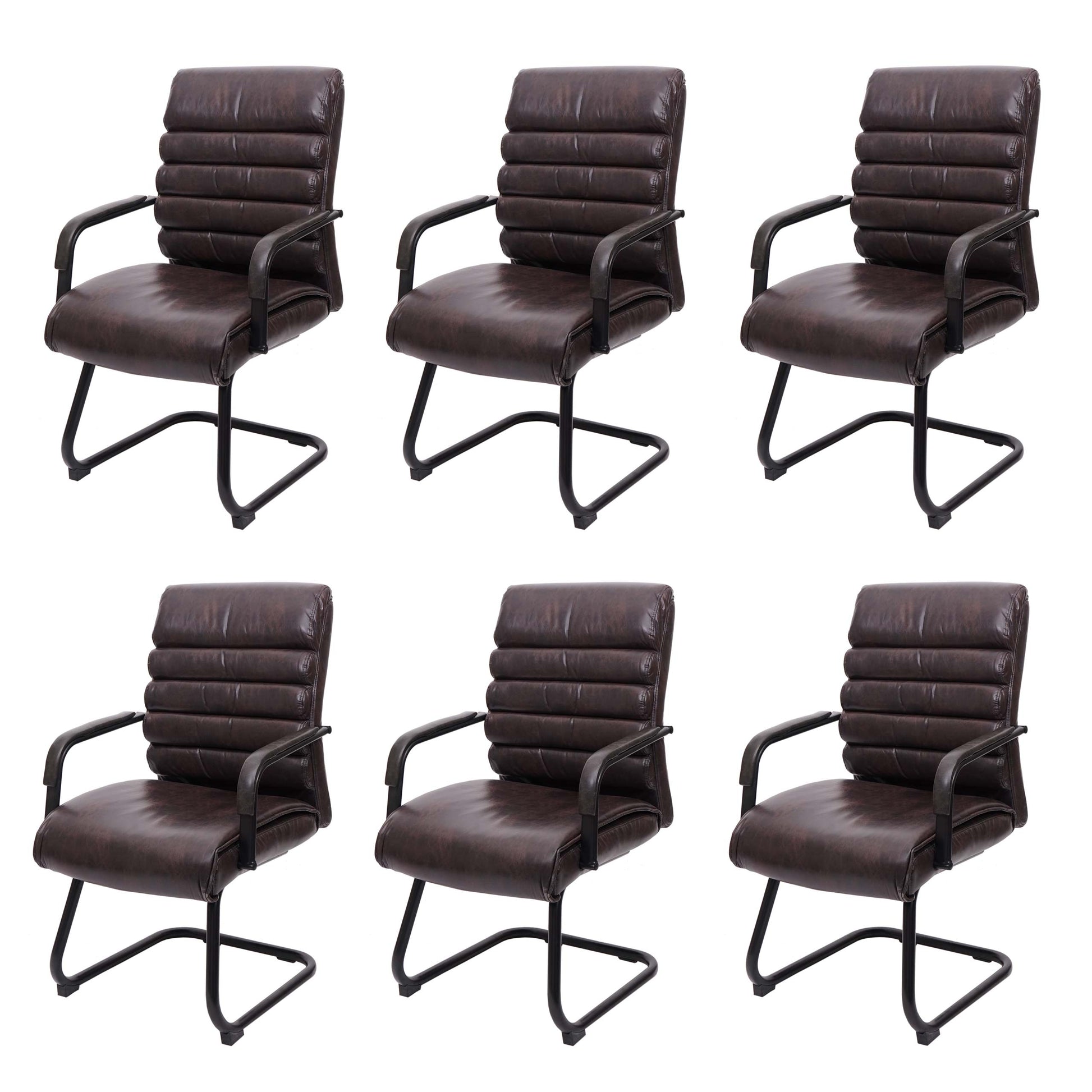 Cosmo Casa - Set van 6 Vergaderstoelen - Suèdelook - Kunstleer & Metaal - Bruin