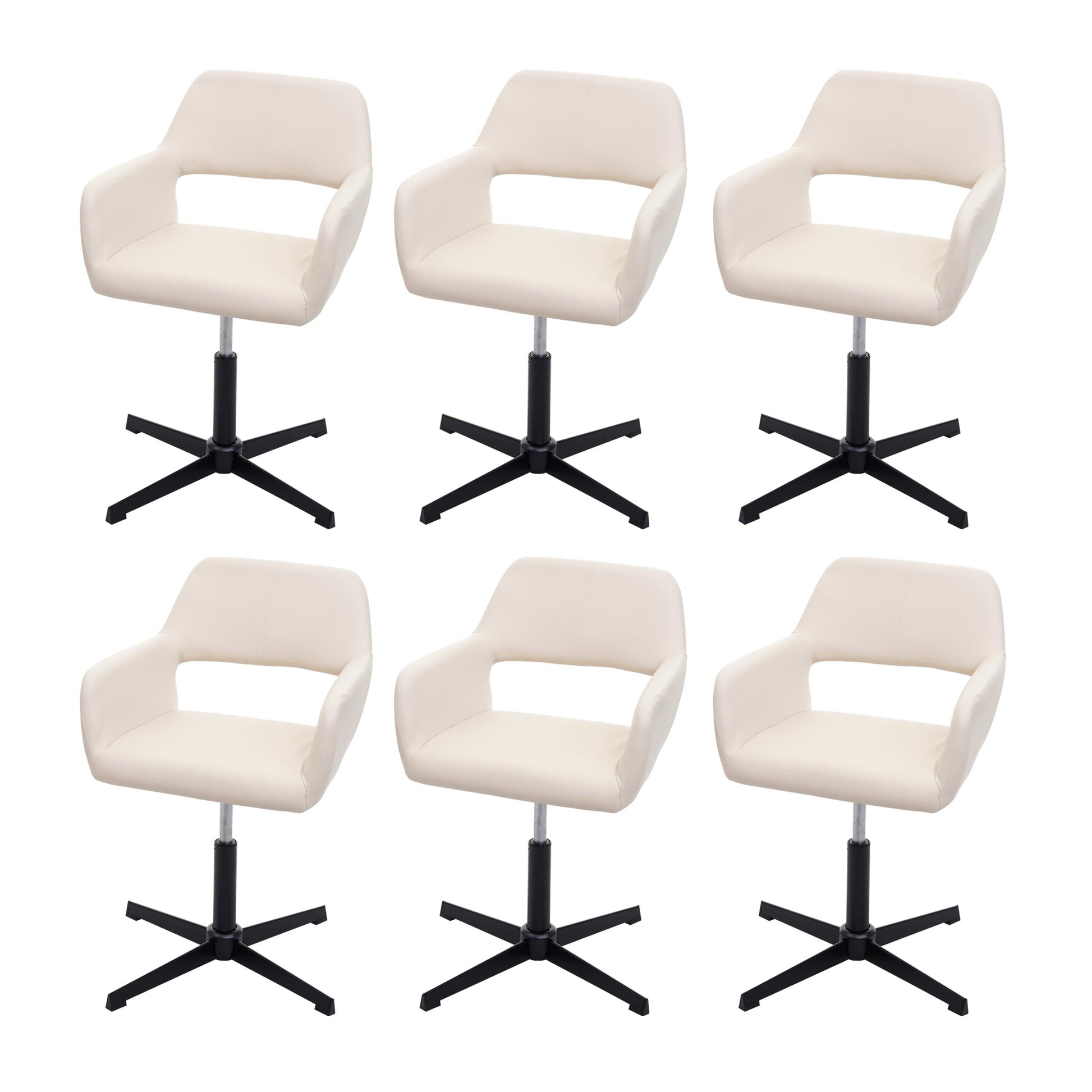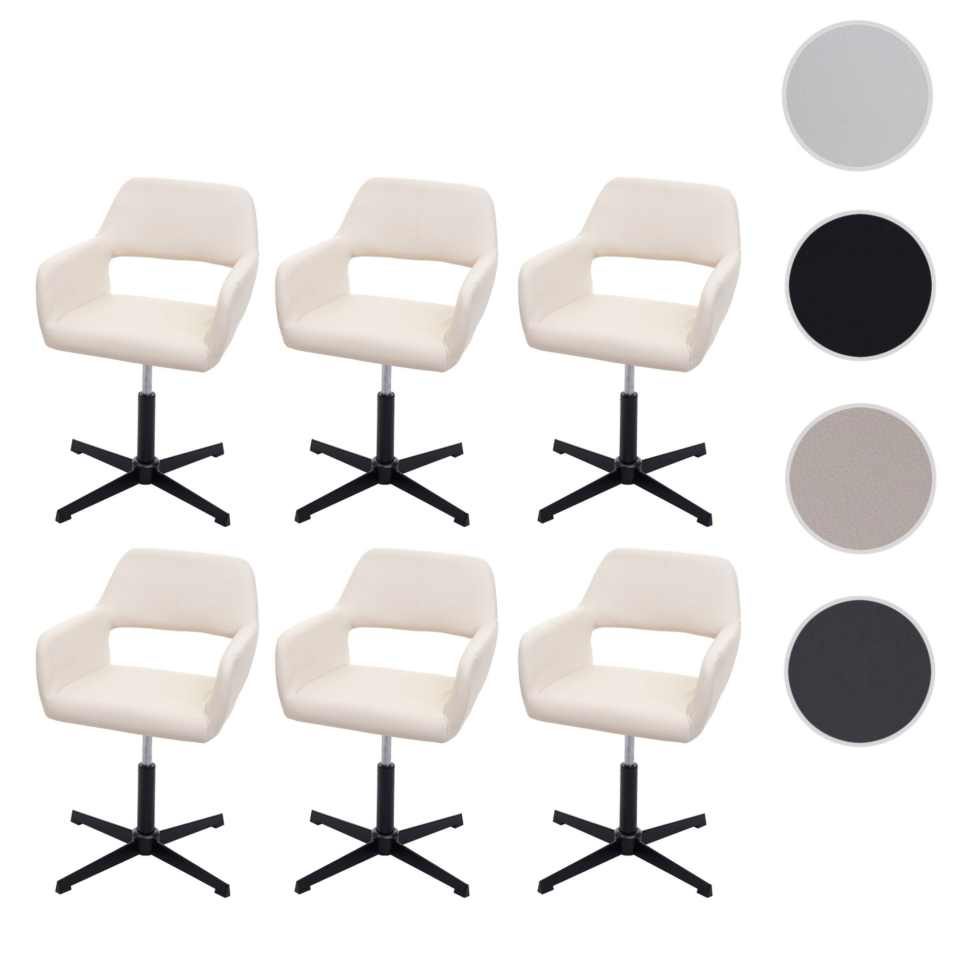 Cosmo Casa - Eetkamerstoelen set van 6 - Verstelbaar retro design - Imitatieleer - Crèmekleurig