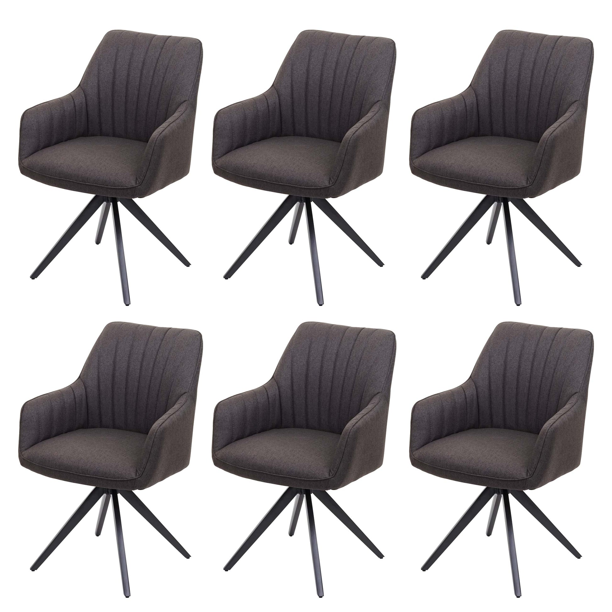 Cosmo Casa - Eetkamerstoelen set van 6 - Met armleuningen - Staal - Grijsbruin - Retro design