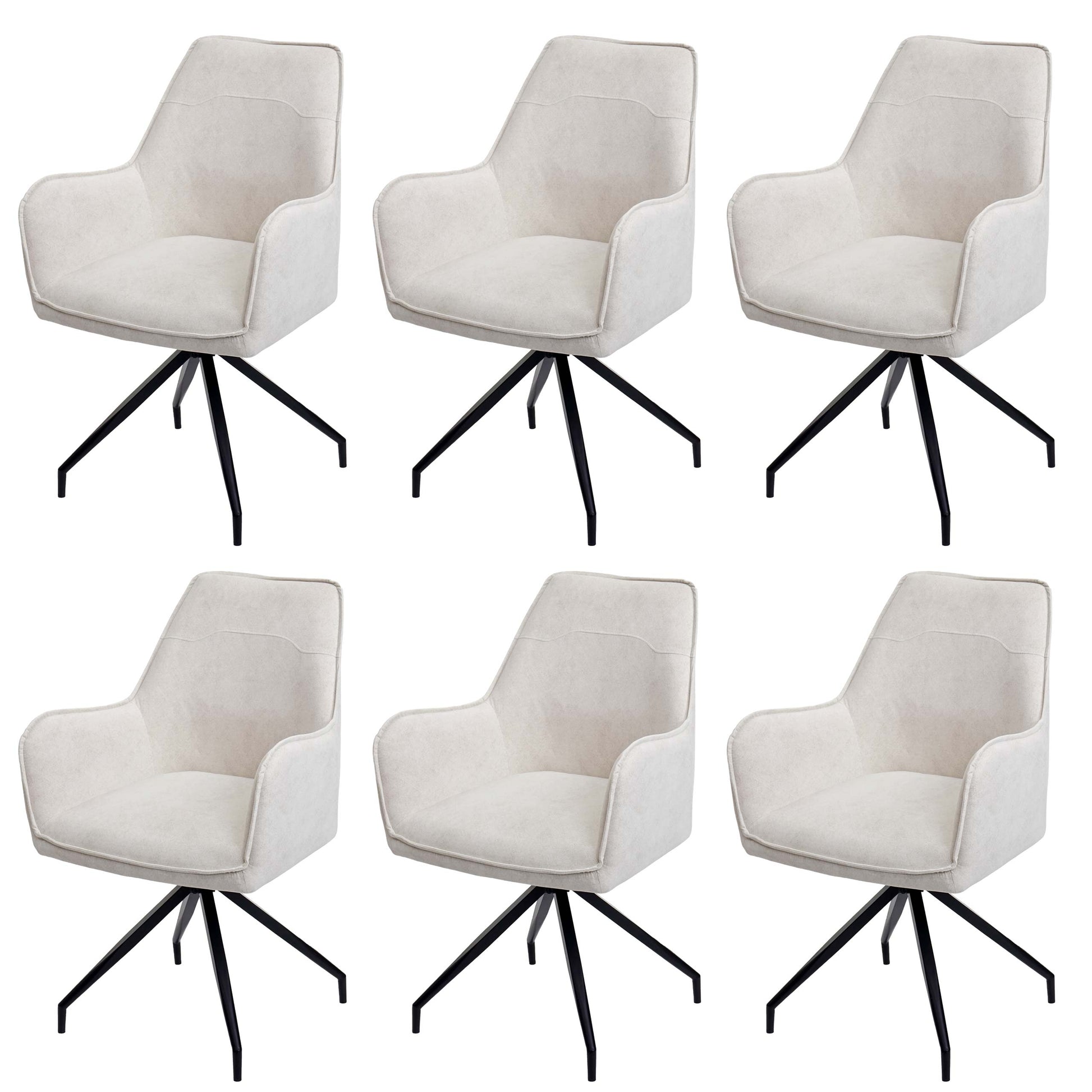 Cosmo Casa - Set van 6 Eetkamerstoelen - Armleuningen - Metaal & Textiel - Crème-Beige | Standaard | €1.679,95