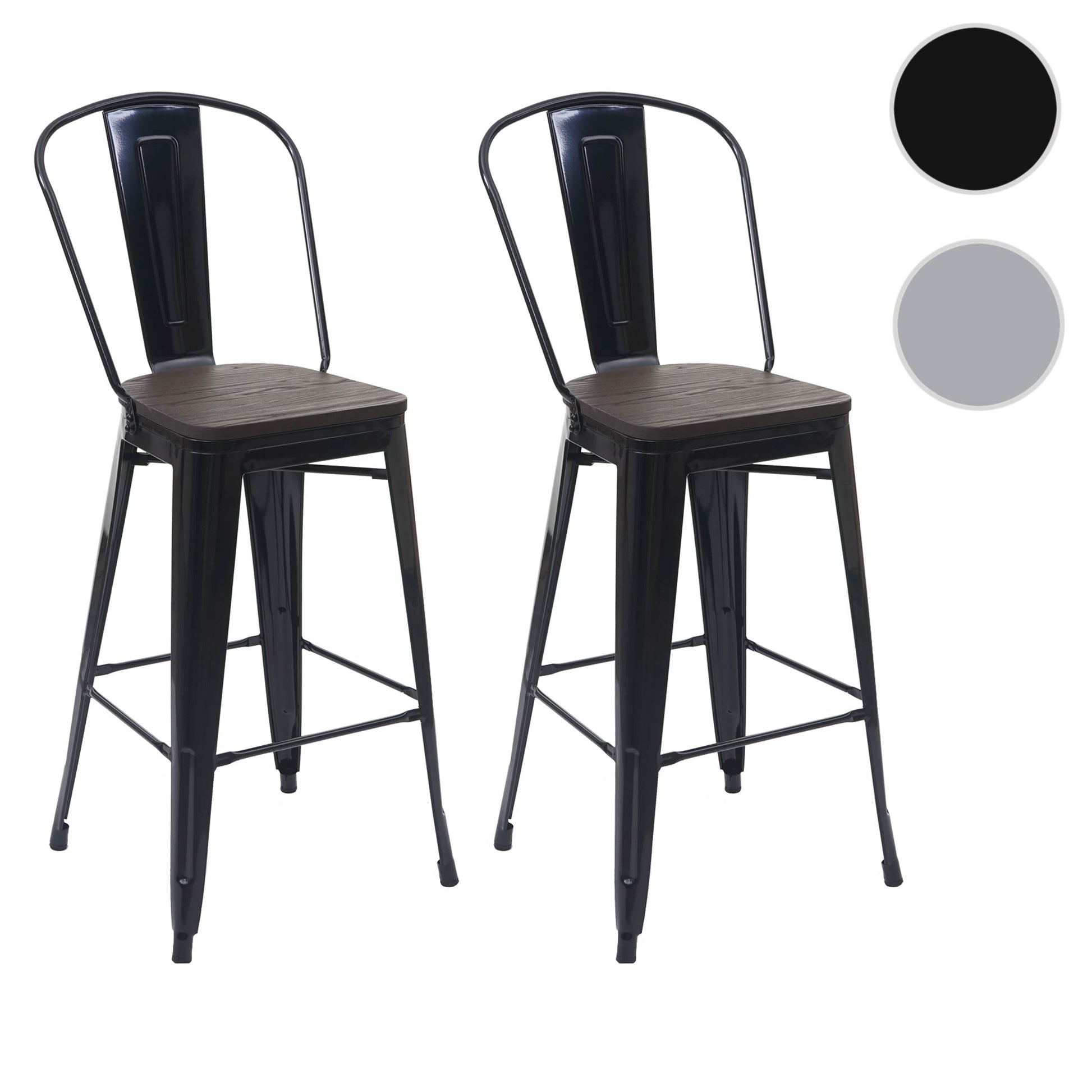 Cosmo Casa - Set van 2 Barkrukken - Counterkruk - Metaal & Hout - Zwart