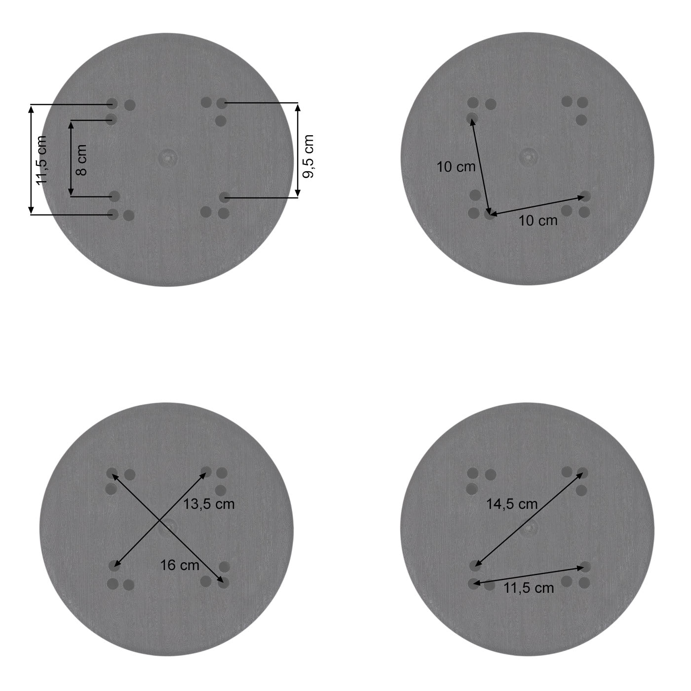 De parasolvoet is universeel compatibel (voor 99% van alle zweef- of marktparasols) dankzij de multi-combineerbare schroefdraadafstand. Dit resulteert in totaal 81 combinatiemogelijkheden voor alle mogelijke parasolvoeten.