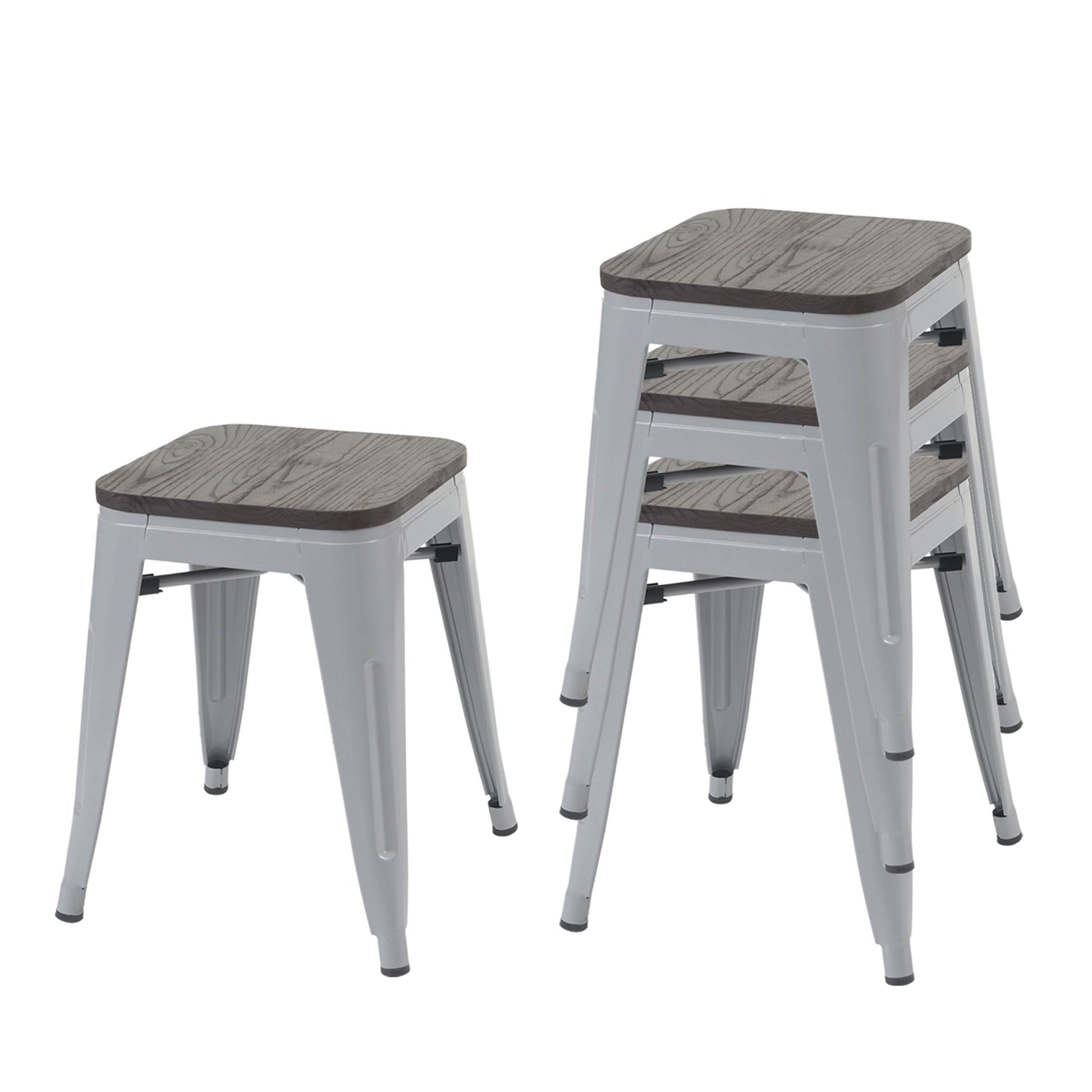 Cosmo Casa - Set van 4 Krukken - Stapelbaar - Metaal & Hout - Grijs