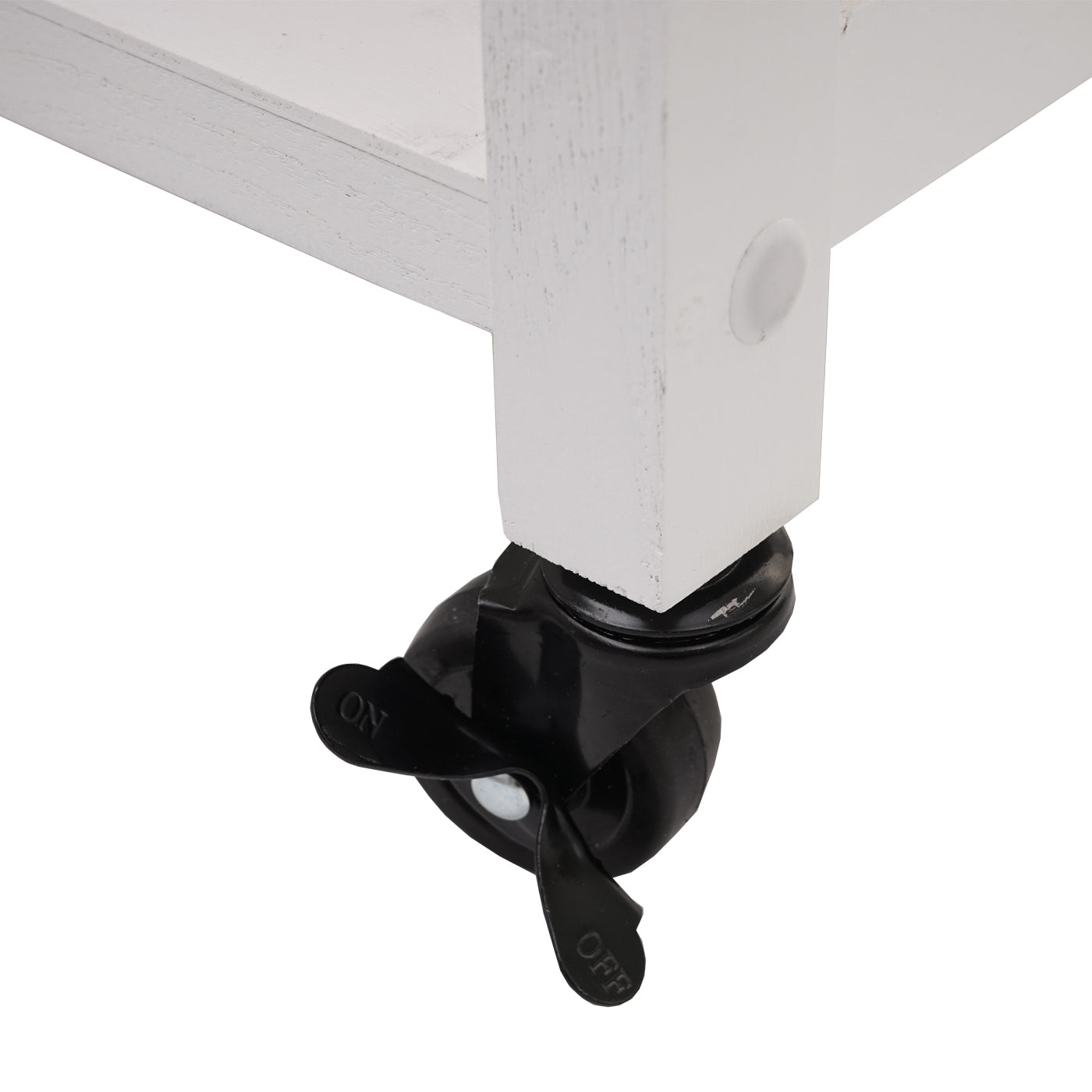 - Met deze veelzijdige keukenwagen met vier soepele wielen vervoert u snel en eenvoudig uw ontbijt, drankjes of hapjes voor een feestje van de ene naar de andere plek. De twee parkeerremmen zorgen bovendien voor een veilige stabiliteit.
