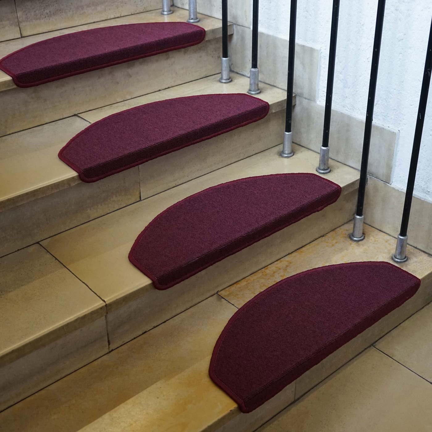 Cosmo Casa - Set van 15 trapmatten - Halfrond - Textiel - Bordeauxrood - 65×25 cm | €56,95