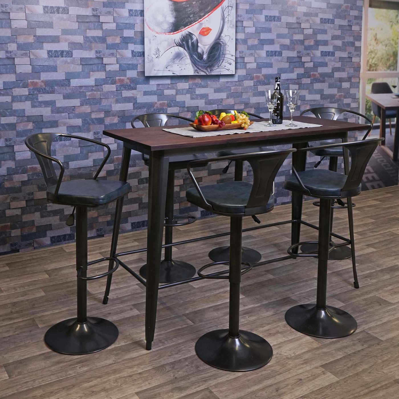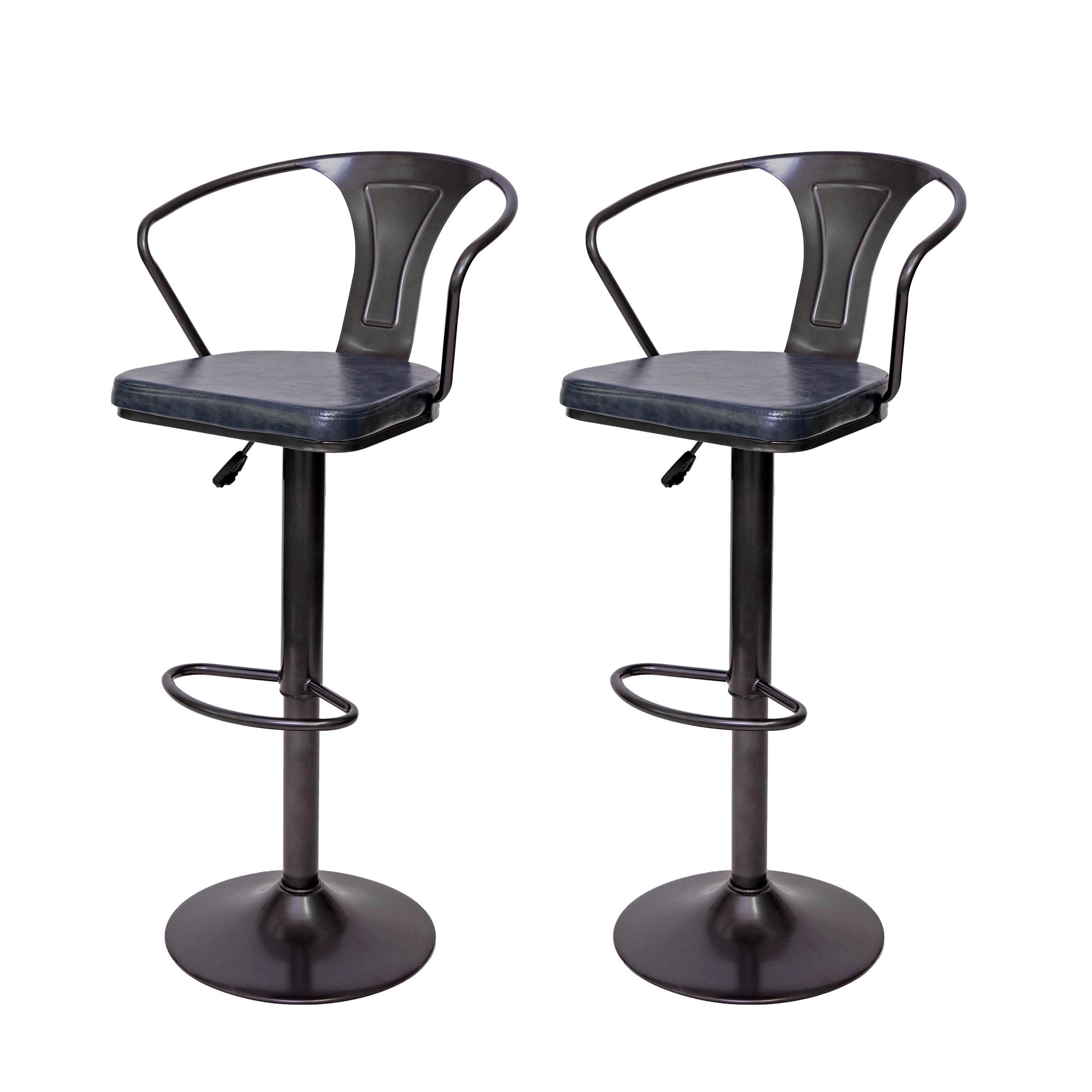 Cosmo Casa - Set van 2 Barkrukken - Verstelbaar - Kunstleer - Vintage zwart-grijs