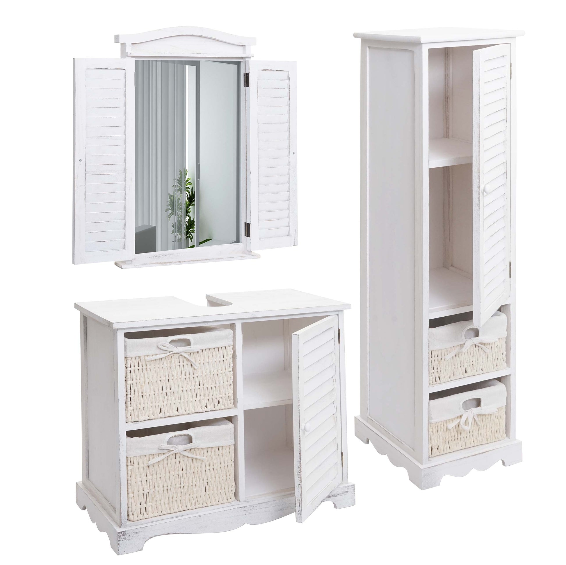 Cosmo Casa - Badkamerset - Hoge kast wastafelonderkast wandspiegel - Multi-materiaal - Shabby white | Standaard | €379,95