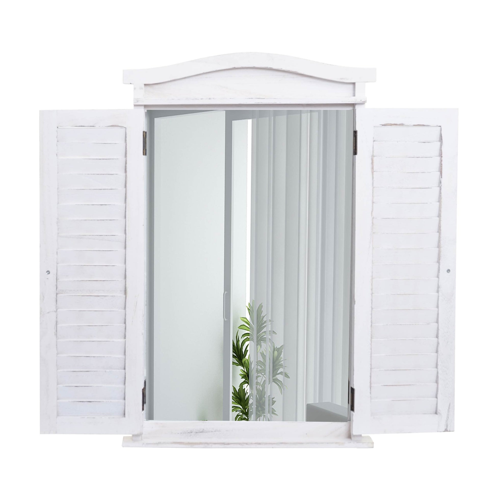 Cosmo Casa - Wandspiegel raam met luiken - Badkamerspiegel - Massief hout - Shabby white - 71 x 46 x 5 cm | Standaard | €75,95