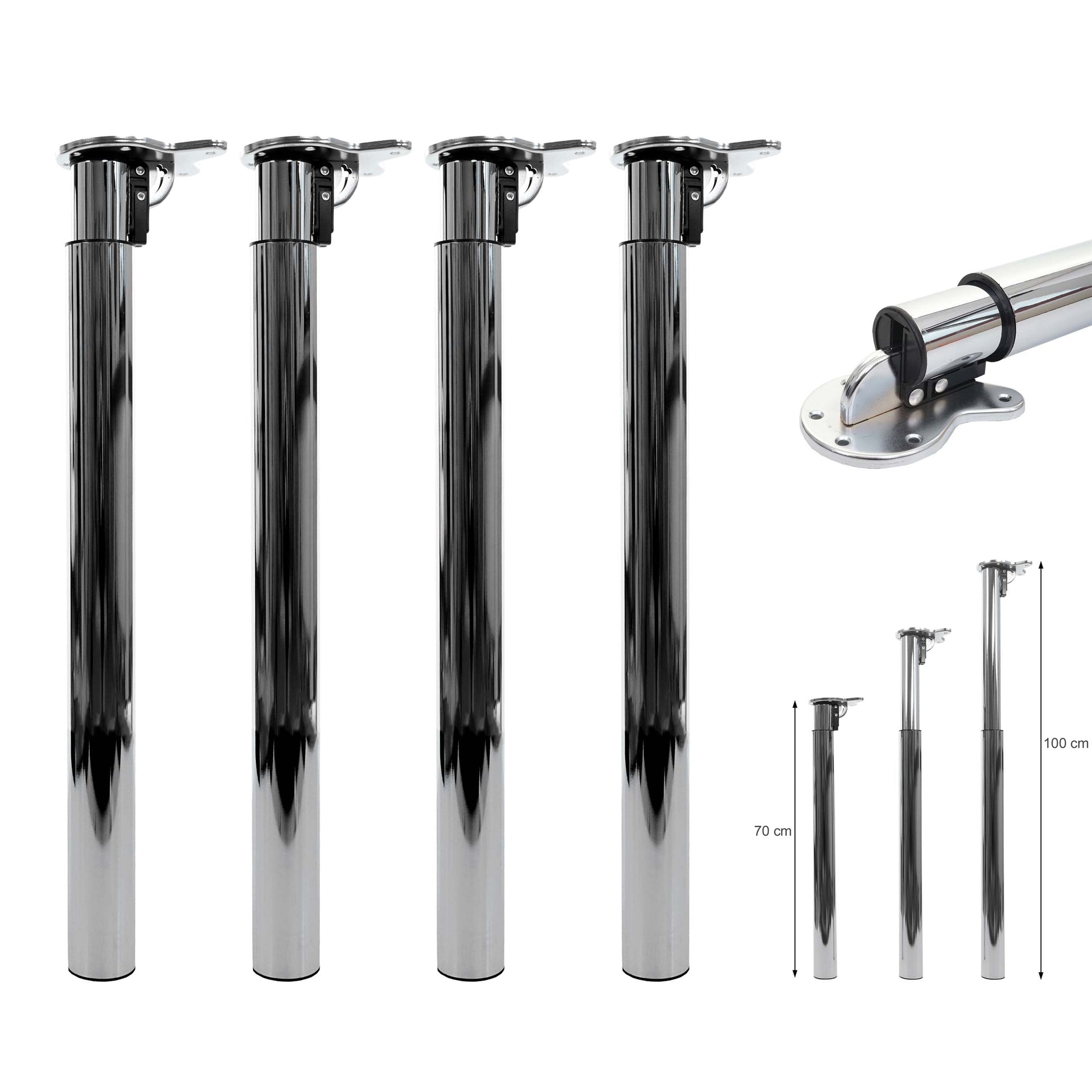 Cosmo Casa - Tafelpoten set van 4 - Opvouwbaar verstelbaar - Metaal - RVS look - 70-110cm | €89,95