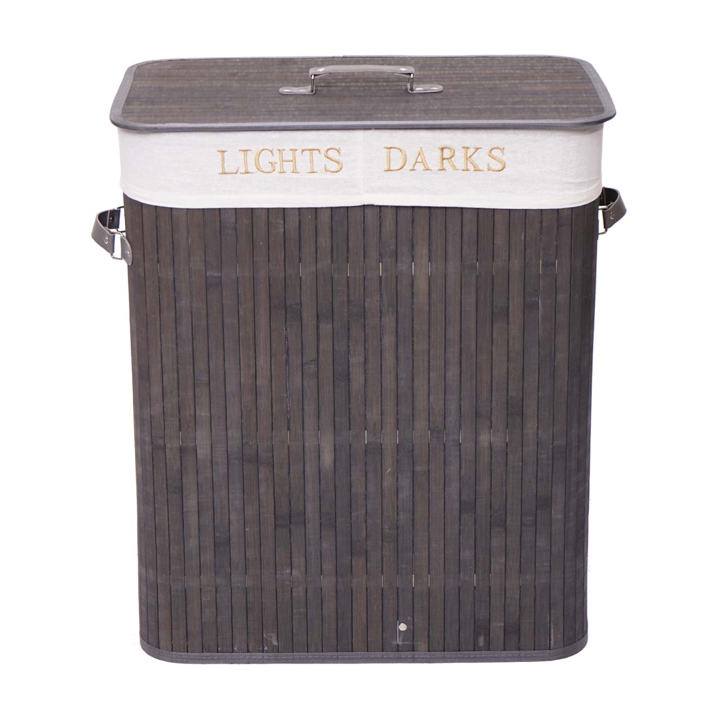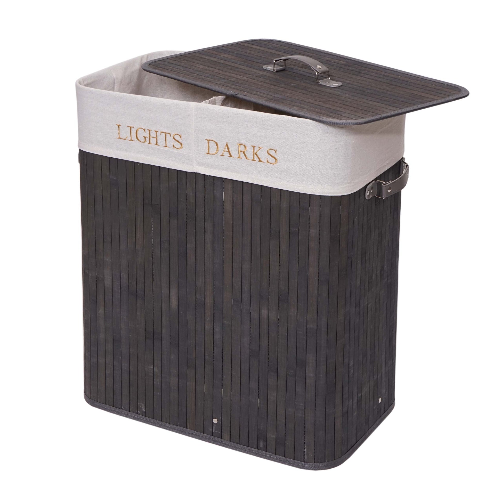 Cosmo Casa - Wasmand - 2 compartimenten - Bamboe - Donkergrijs - 63×55×34 cm | €34,95
