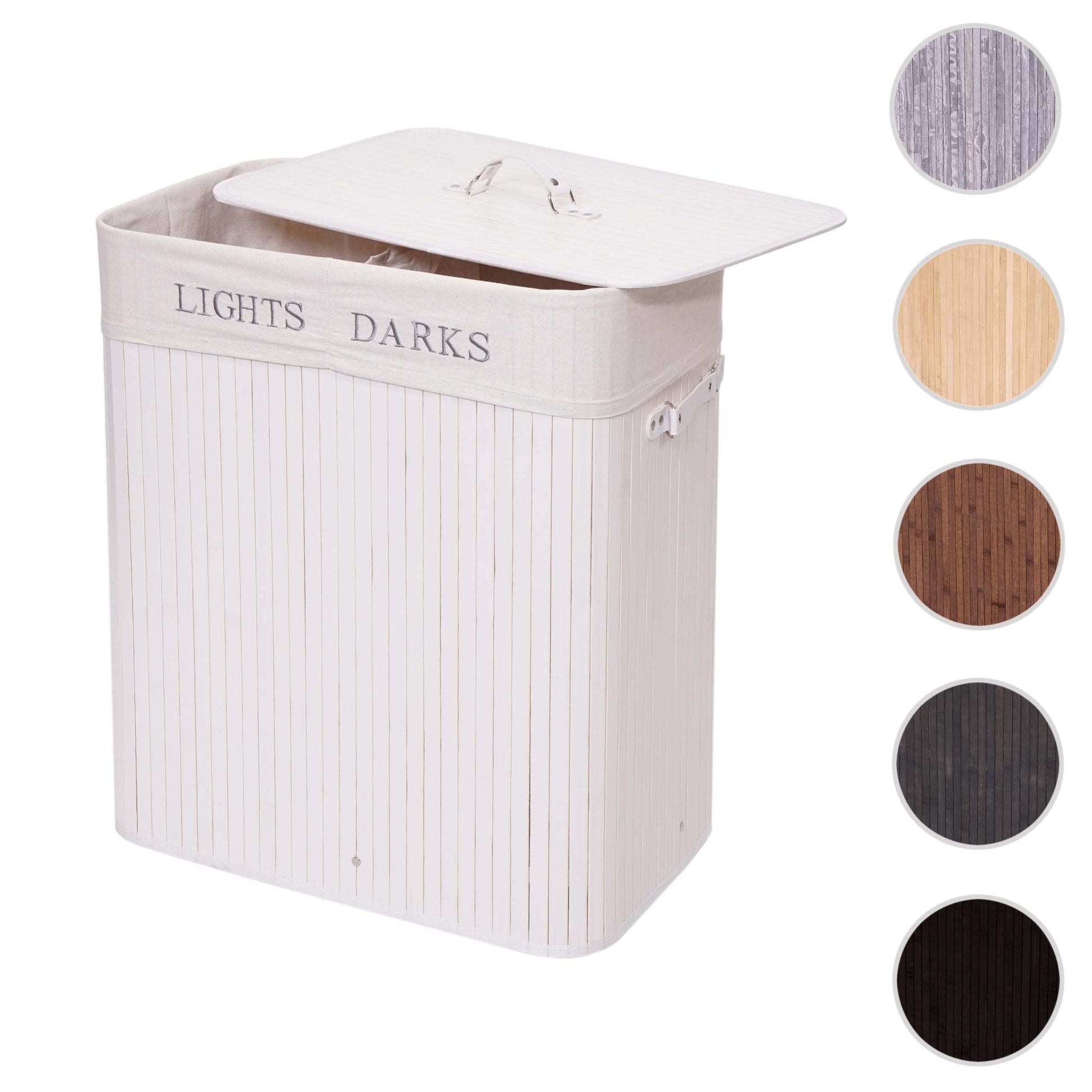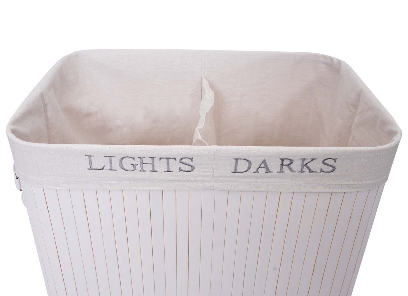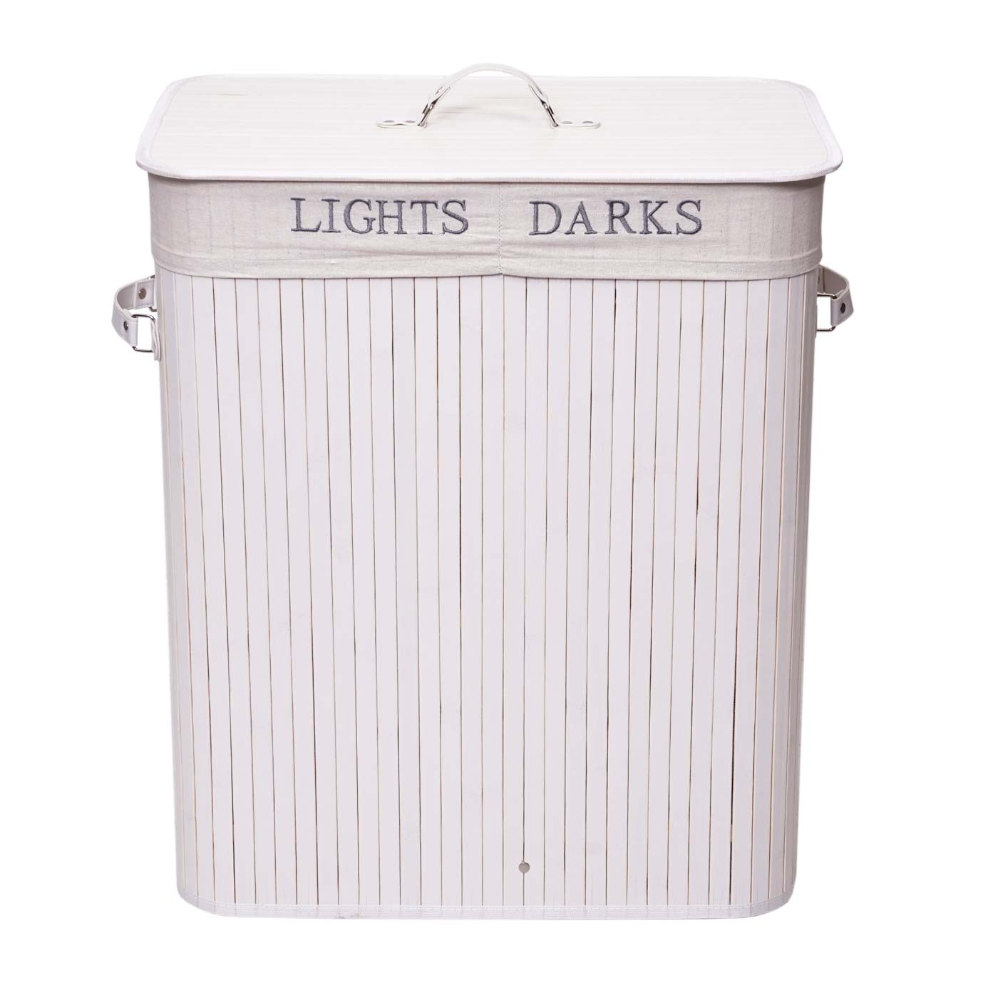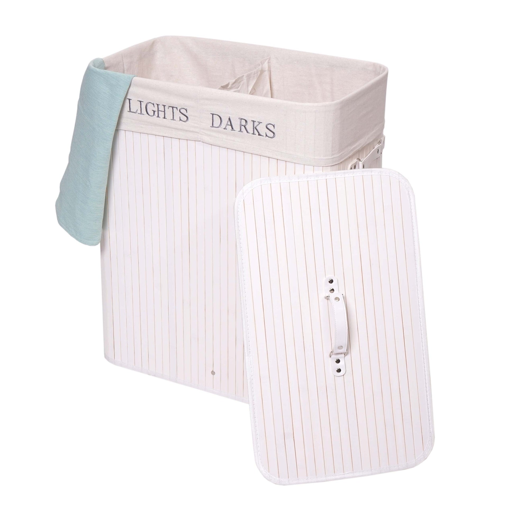 Cosmo Casa - Wasmand - 2 compartimenten - Bamboe - Wit - 63×55×34 cm | €49,95