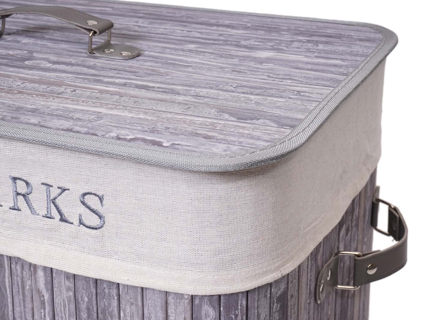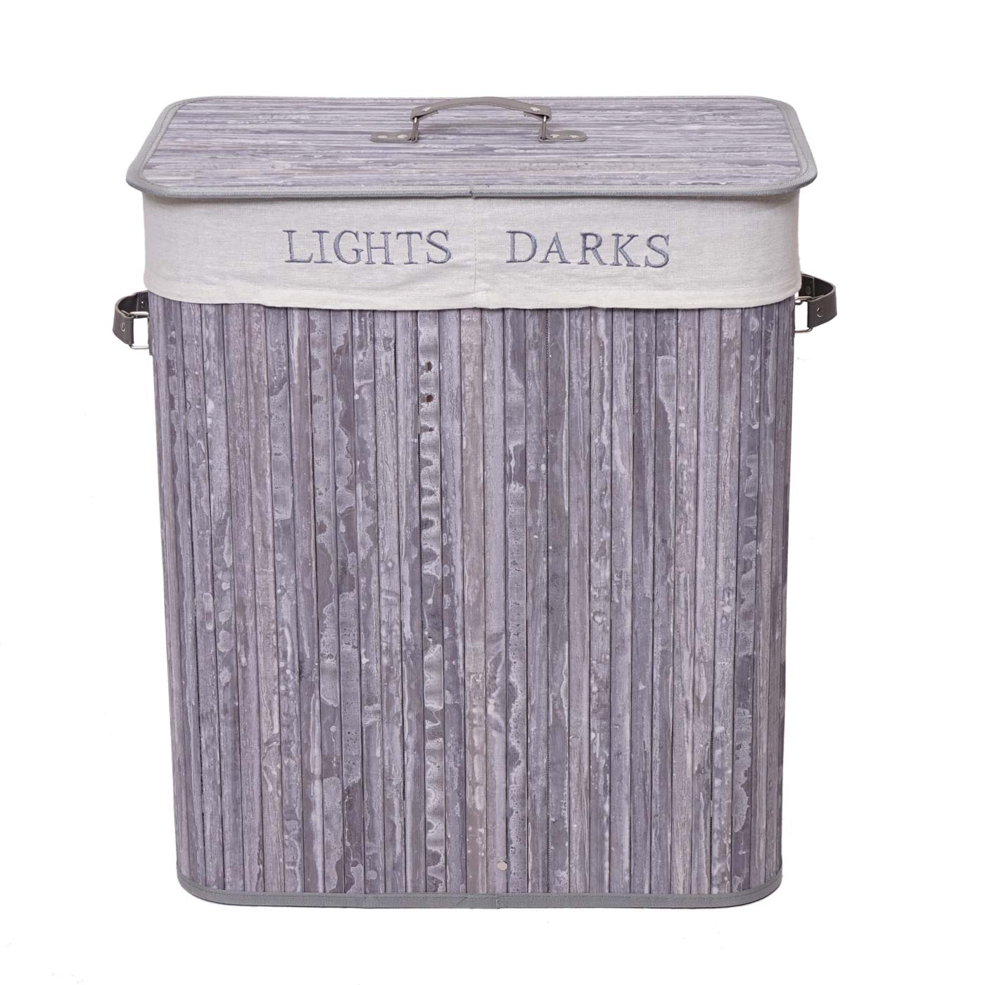 Cosmo Casa - Wasmand - 2 compartimenten - Bamboe - Grijsblauw - 63×55×34 cm | €38,95