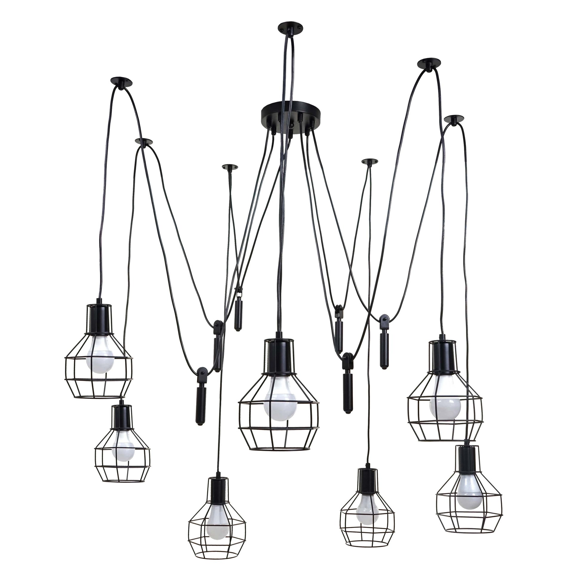 Cosmo Casa - Hanglamp - 7 lampenkappen - Metaal - Zwart - Meshkap