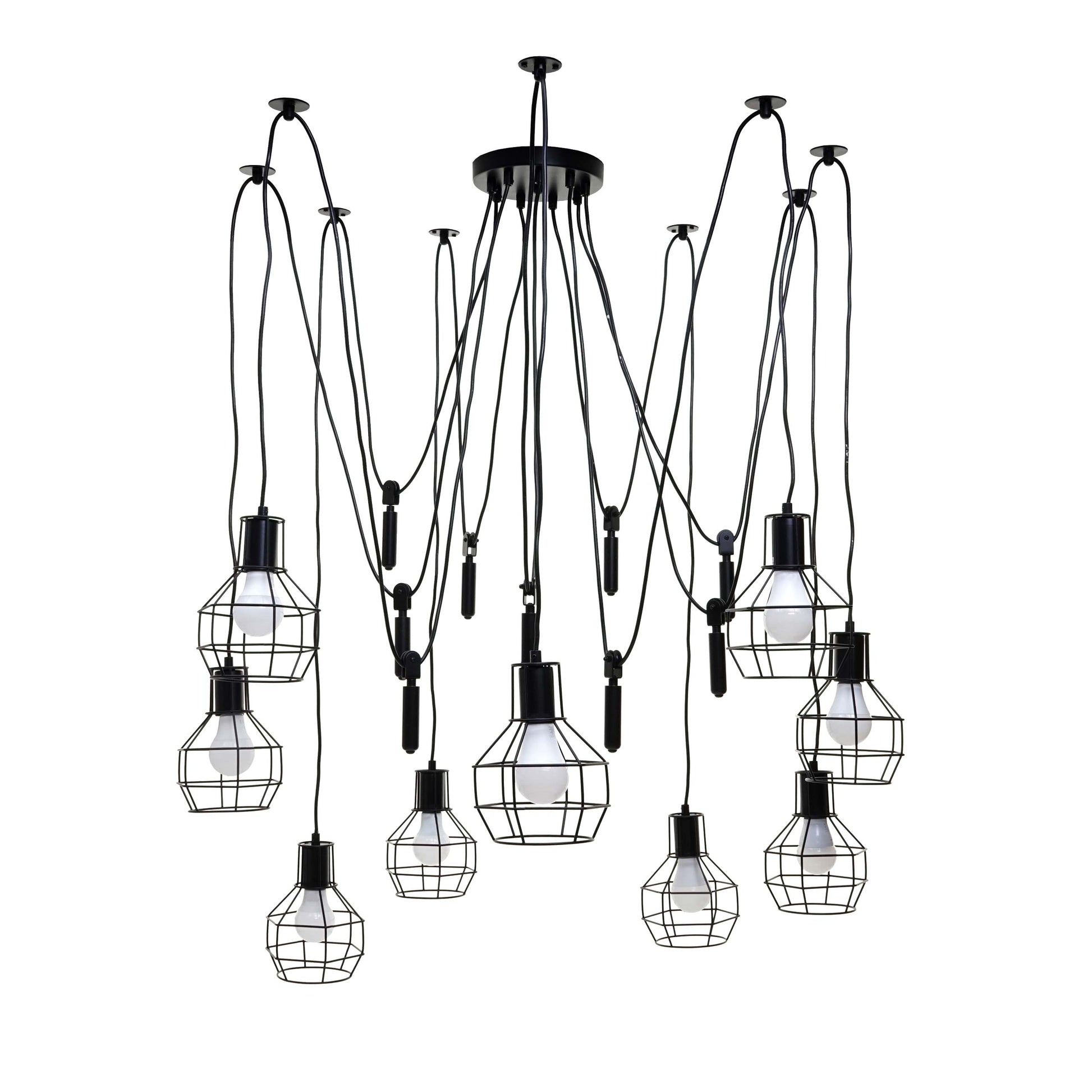 Cosmo Casa - Hanglamp - 9 lampenkappen - Metaal - Zwart - Meshkap