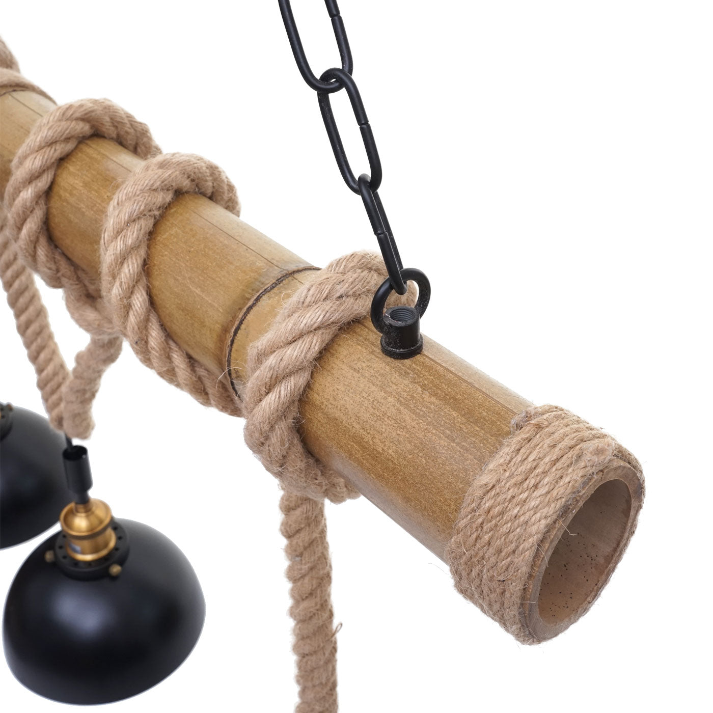 Cosmo Casa - Hanglamp - Vintage - Bamboe & Metaal - Zwart - 3 koepellampenkappen