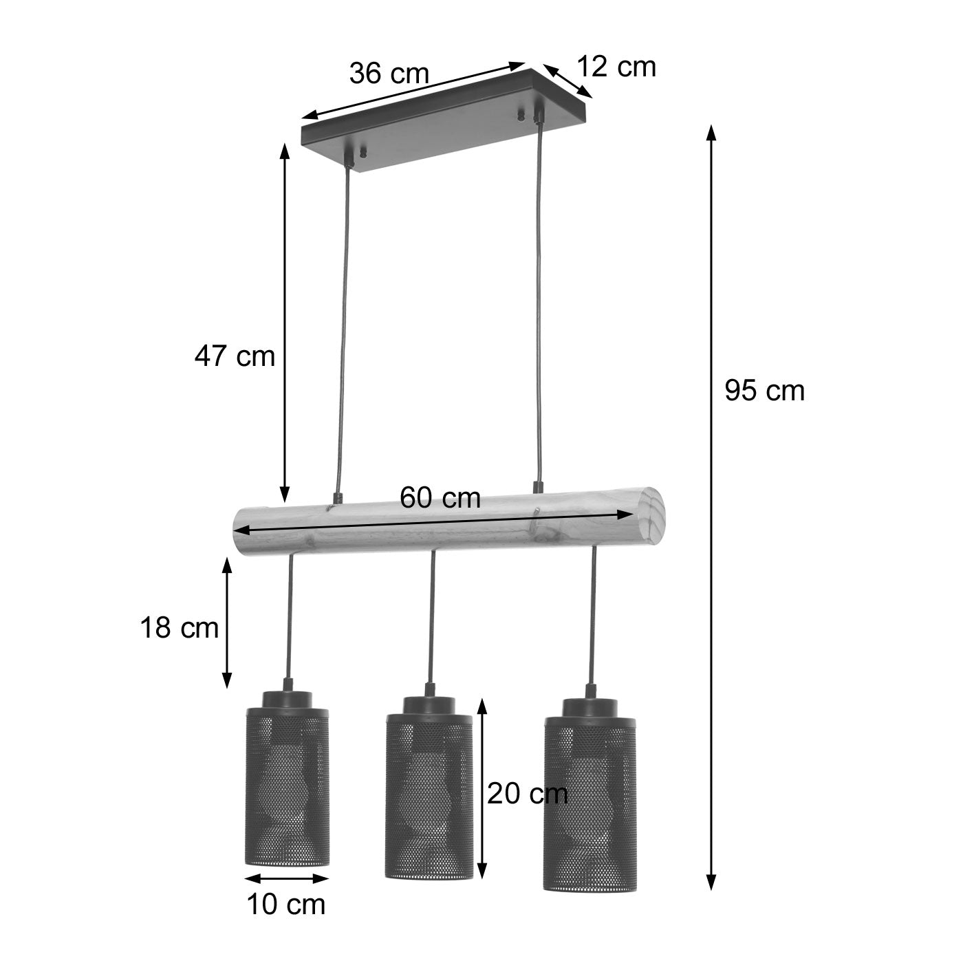 Cosmo Casa - Hanglamp - Vintage - Hout & Metaal - Zwart - 3 buislampenkappen