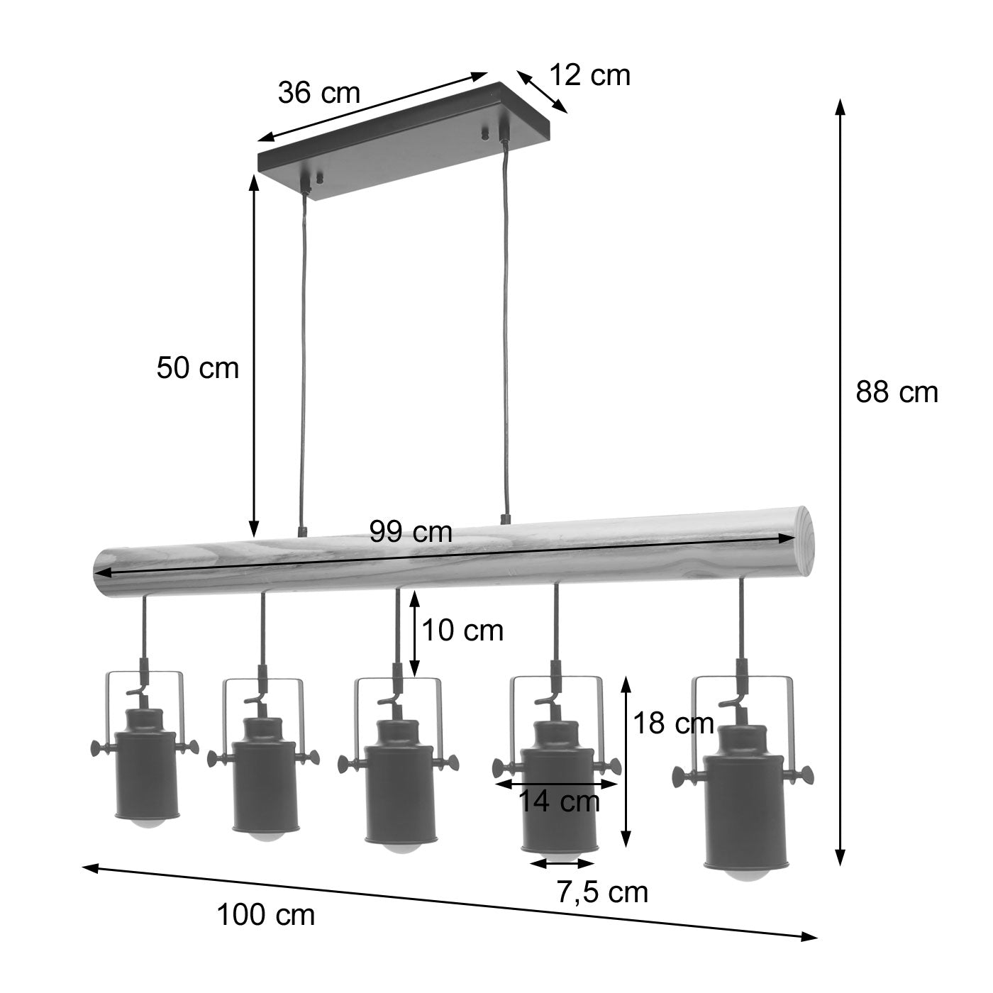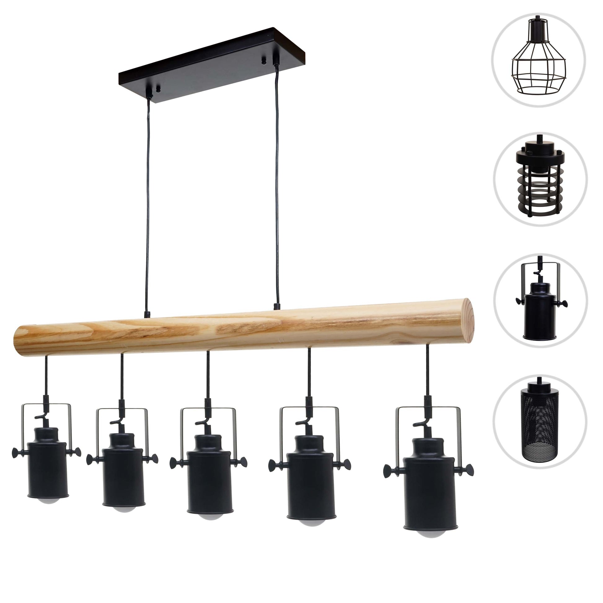 Cosmo Casa - Hanglamp - Vintage - Hout & Metaal - Zwart - 5 spotjes