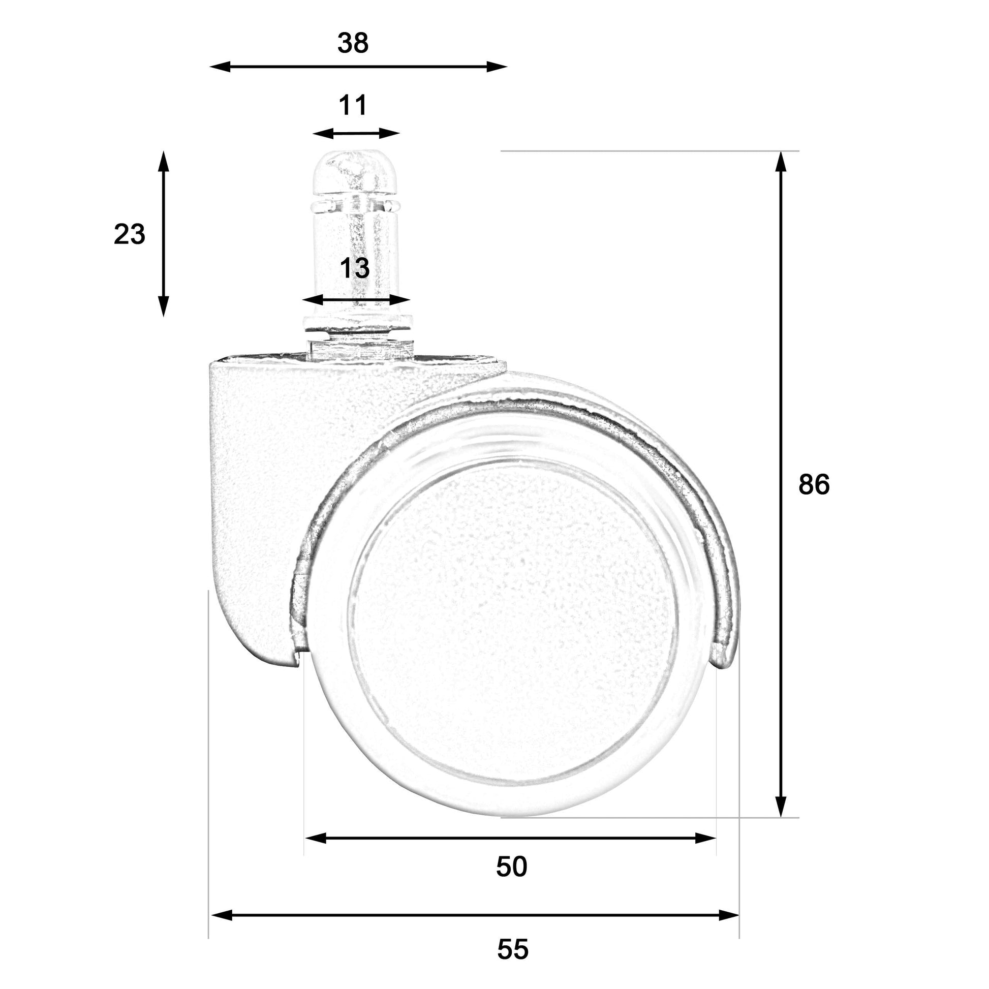 Deze wielen, met een draagvermogen tot 150 kg, zijn bijzonder geschikt voor XXL-bureaustoelen. Bij gaten of andere grote oneffenheden in de vloer kunnen de wielen echter door hefboomwerking beschadigd raken, zelfs bij een gewicht van minder dan 150 kg. Voor oneffen tegelvloeren adviseren wij het gebruik voor een lichaamsgewicht tot 120 kg.