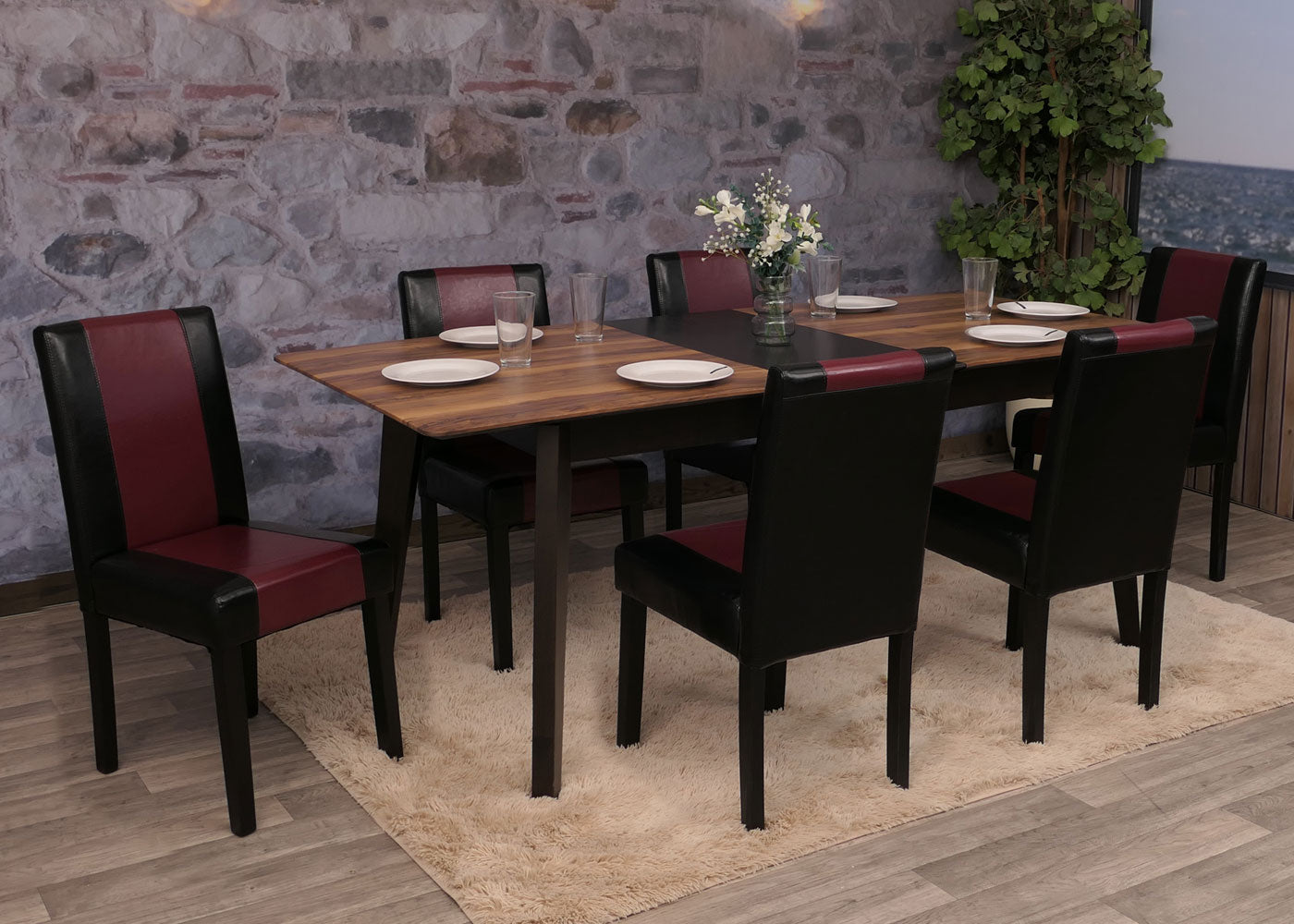 Cosmo Casa Littau eetkamerstoel, keukenstoel, imitatieleer ~ zwart/rood, donkere poten
