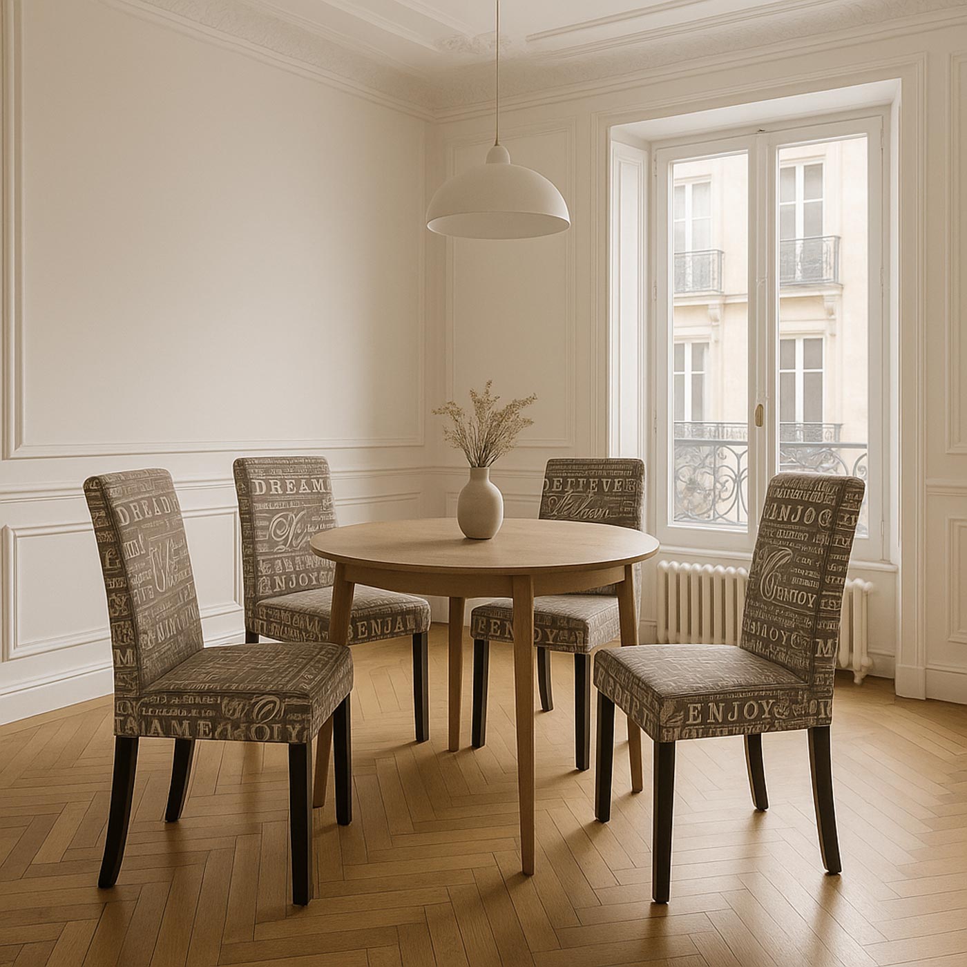 Cosmo Casa - Eetkamerstoel - Keukenstoel Littau - Textiel - Grijze Letters - Donkere Poten