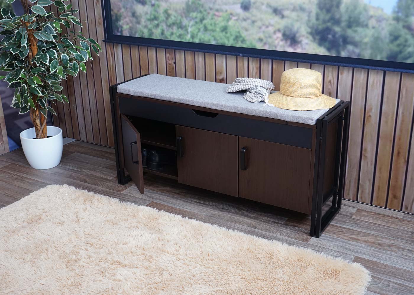 Cosmo Casa - Schoenenkast met Zitplaatsen - Ladekast & Bank met Kussens - 3D-Structuur Metaal - Donkerbruin | Standaard | ā¬135,95