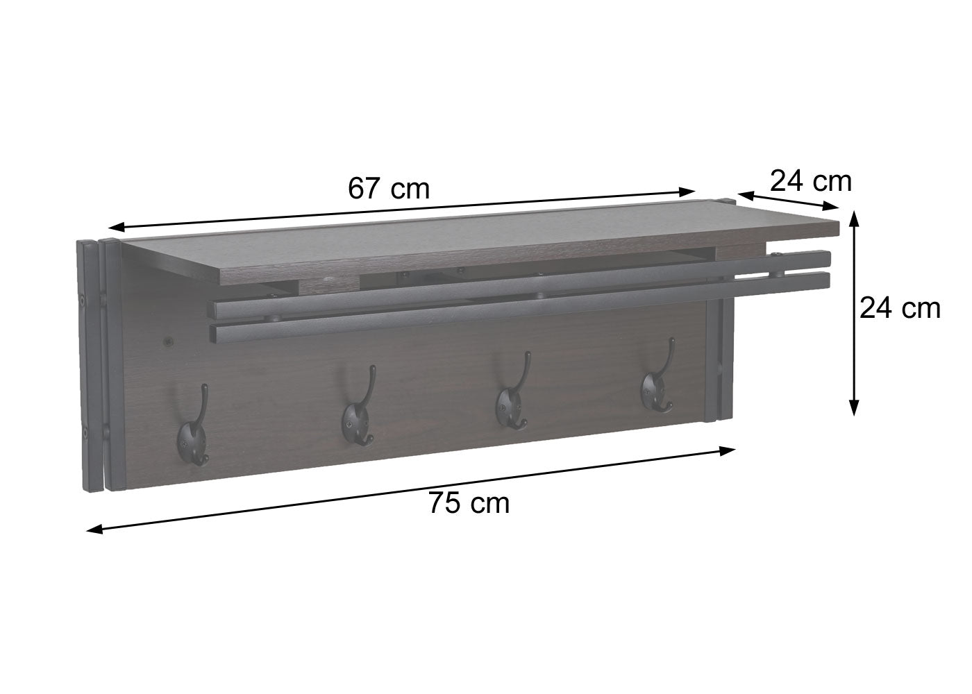 Cosmo Casa - Wandkapstok - Met 4 haken - Hout - Donkerbruin - 75x24x24cm