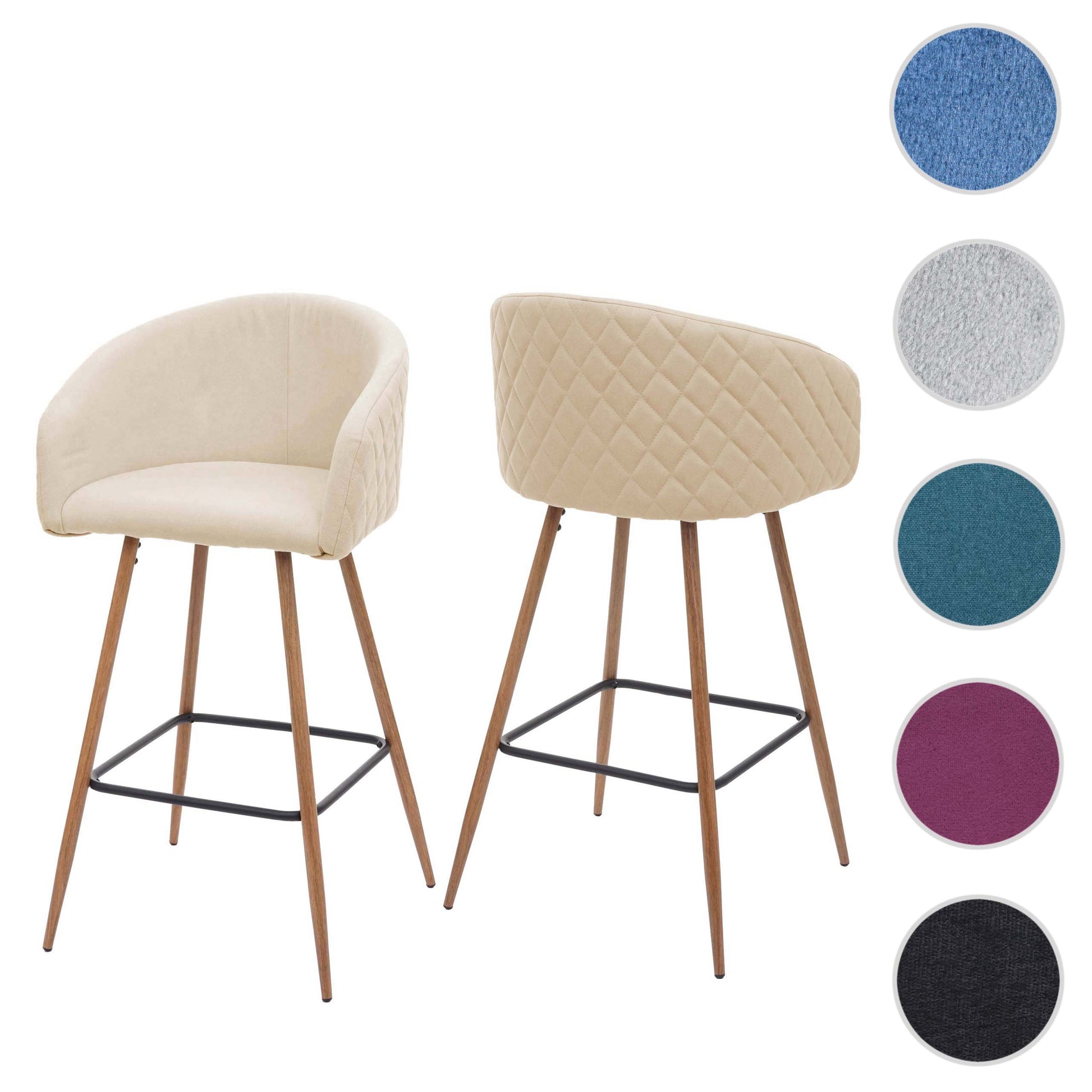 Cosmo Casa - Set van 2 Barkrukken - Barkruk - Keukenkruk met Rugleuning - Metaal Houtlook - Stoftextiel - Crème Beige